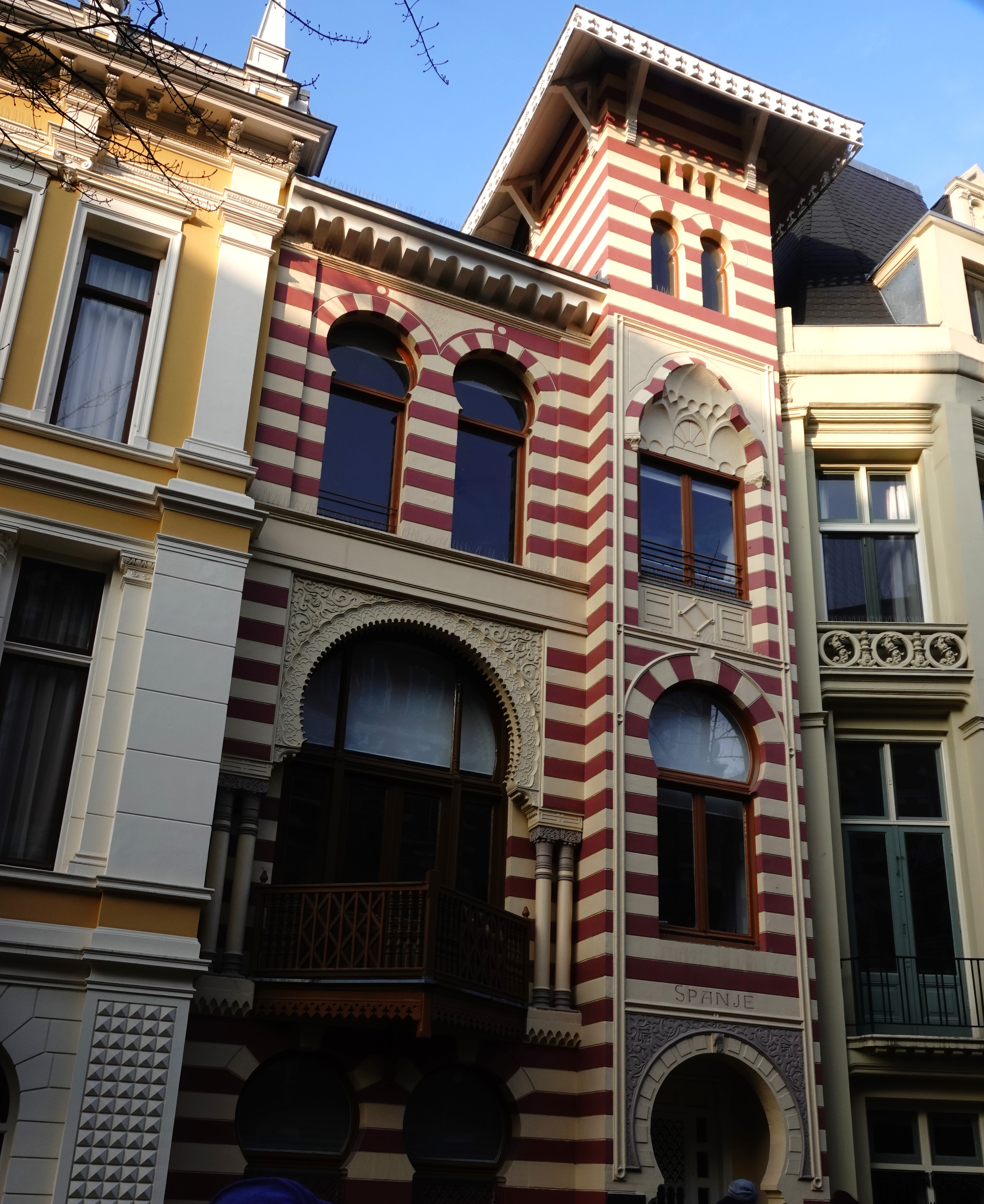 Er leek geen eind aan de mooie gebouwen te komen met al die bijzondere bouwstijlen. Even een greep: Americain hotel-restaurant