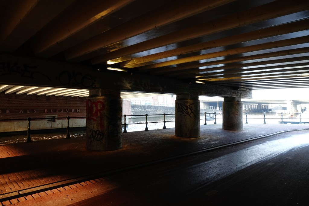 Zo liepen we met ons hoofd vol van de vele indrukken onder een viaduct door en kwamen bij het beginpunt uit.