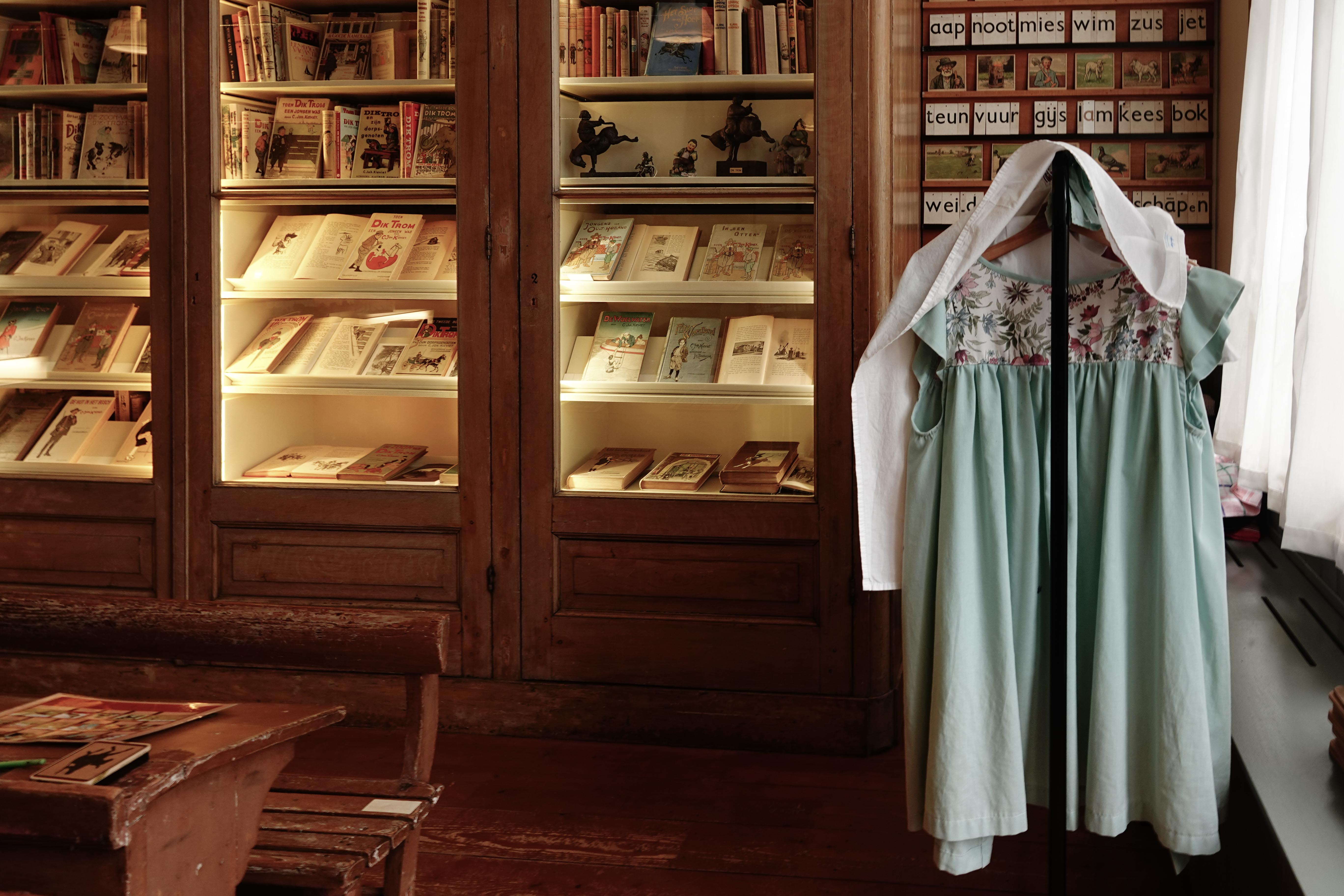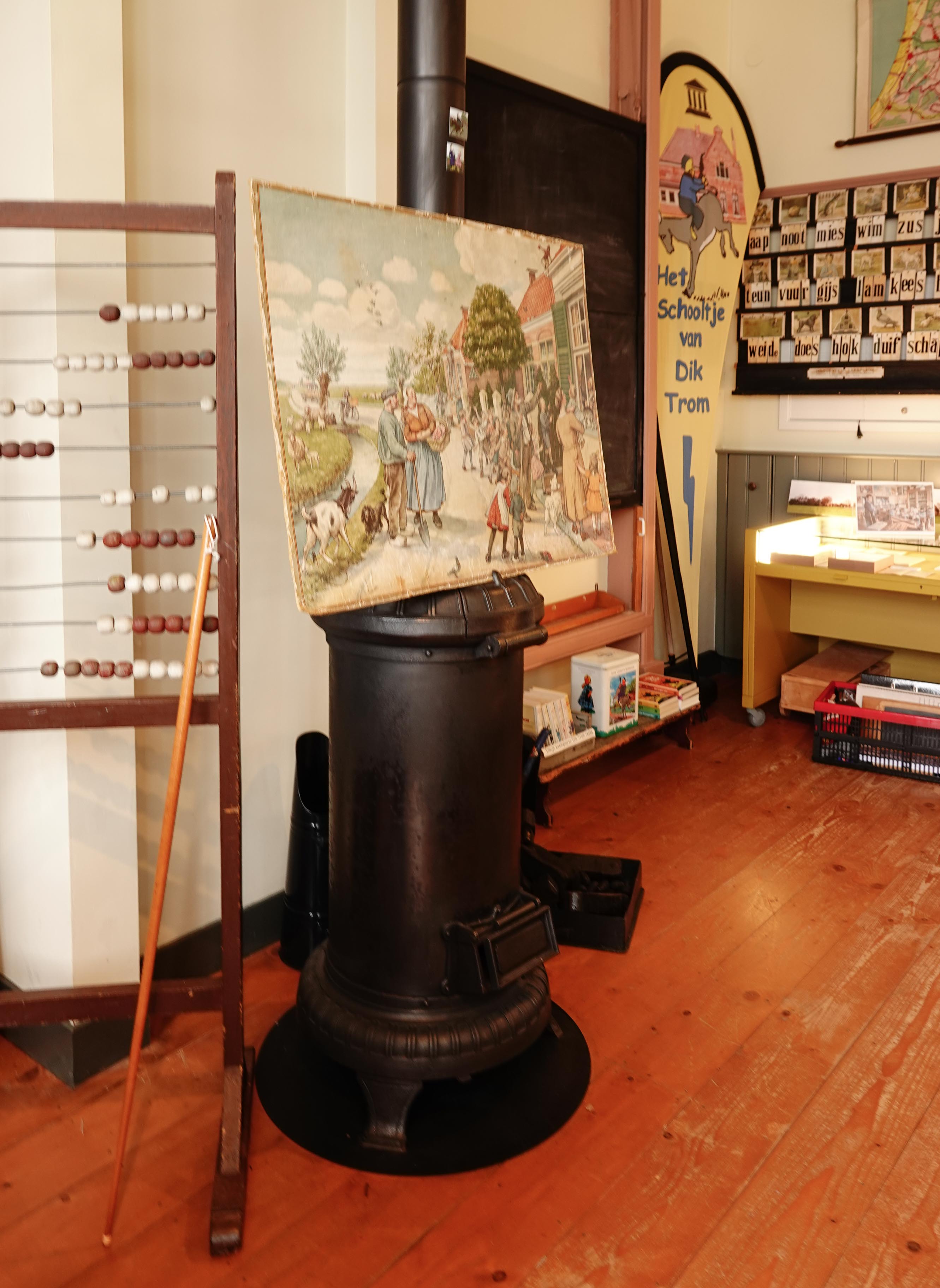 Er hangen verkleedkleren, zodat je de sfeer van toen helemaal kunt terugtoveren. Een enthousiaste groep vrijwilligers vertelt graag over het onderwijs van toen.