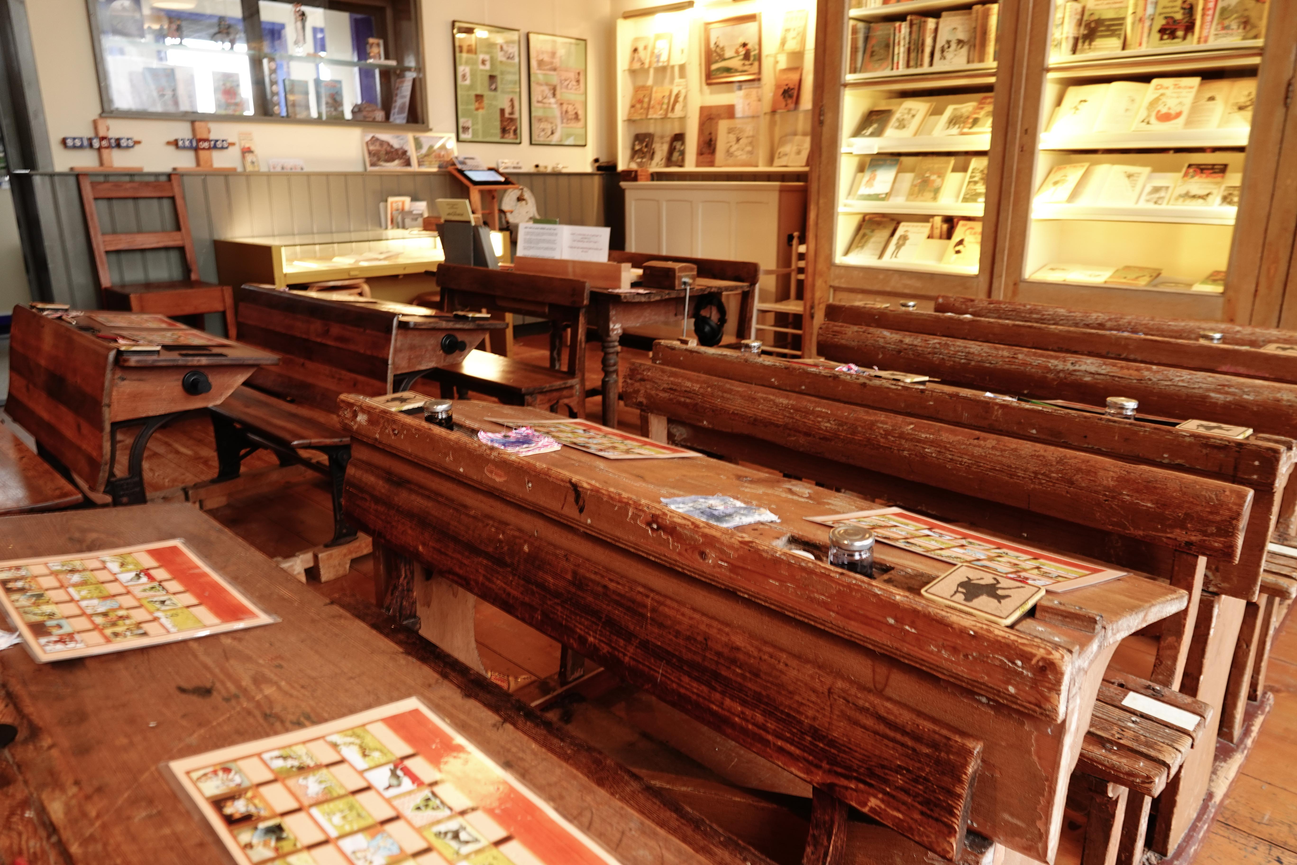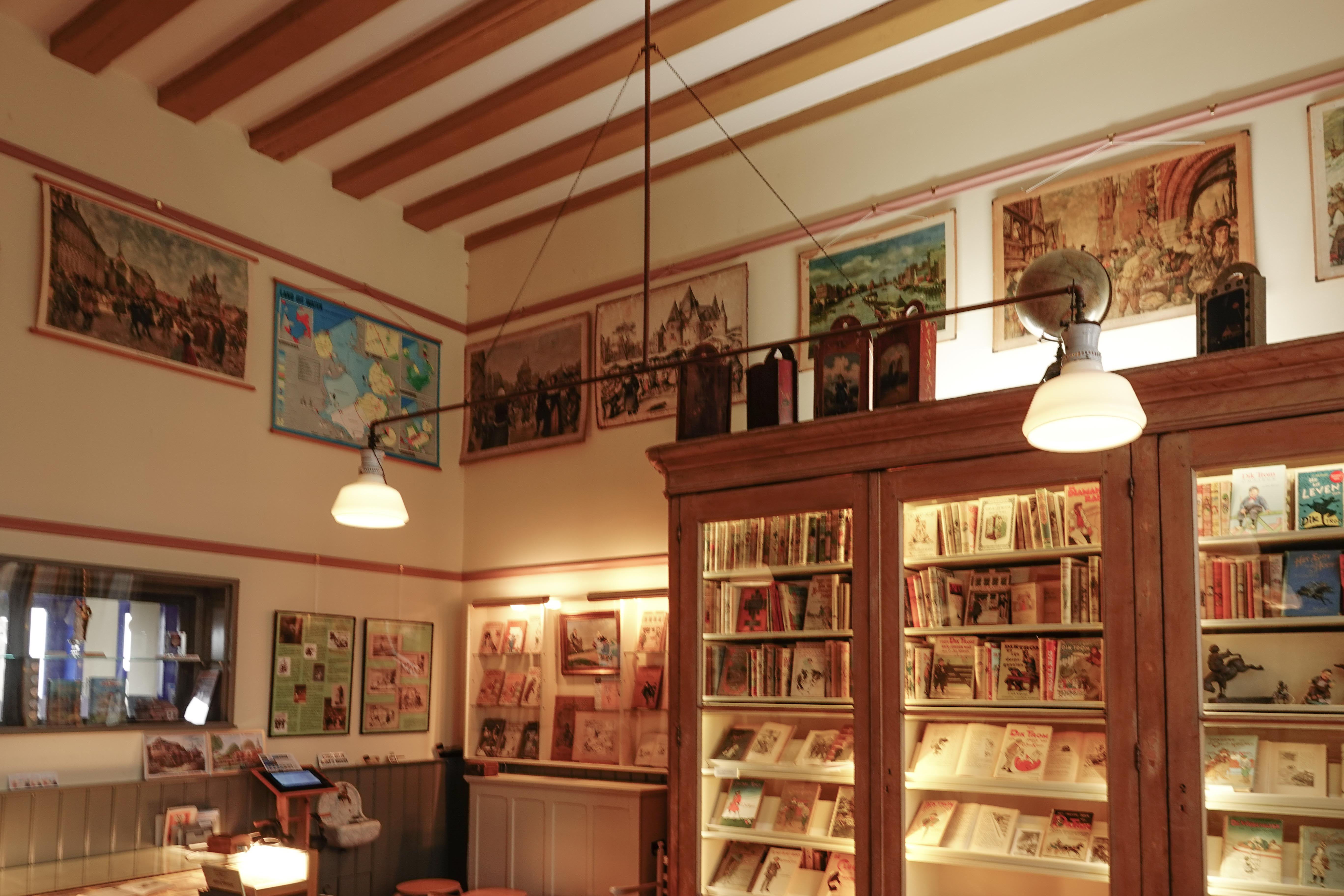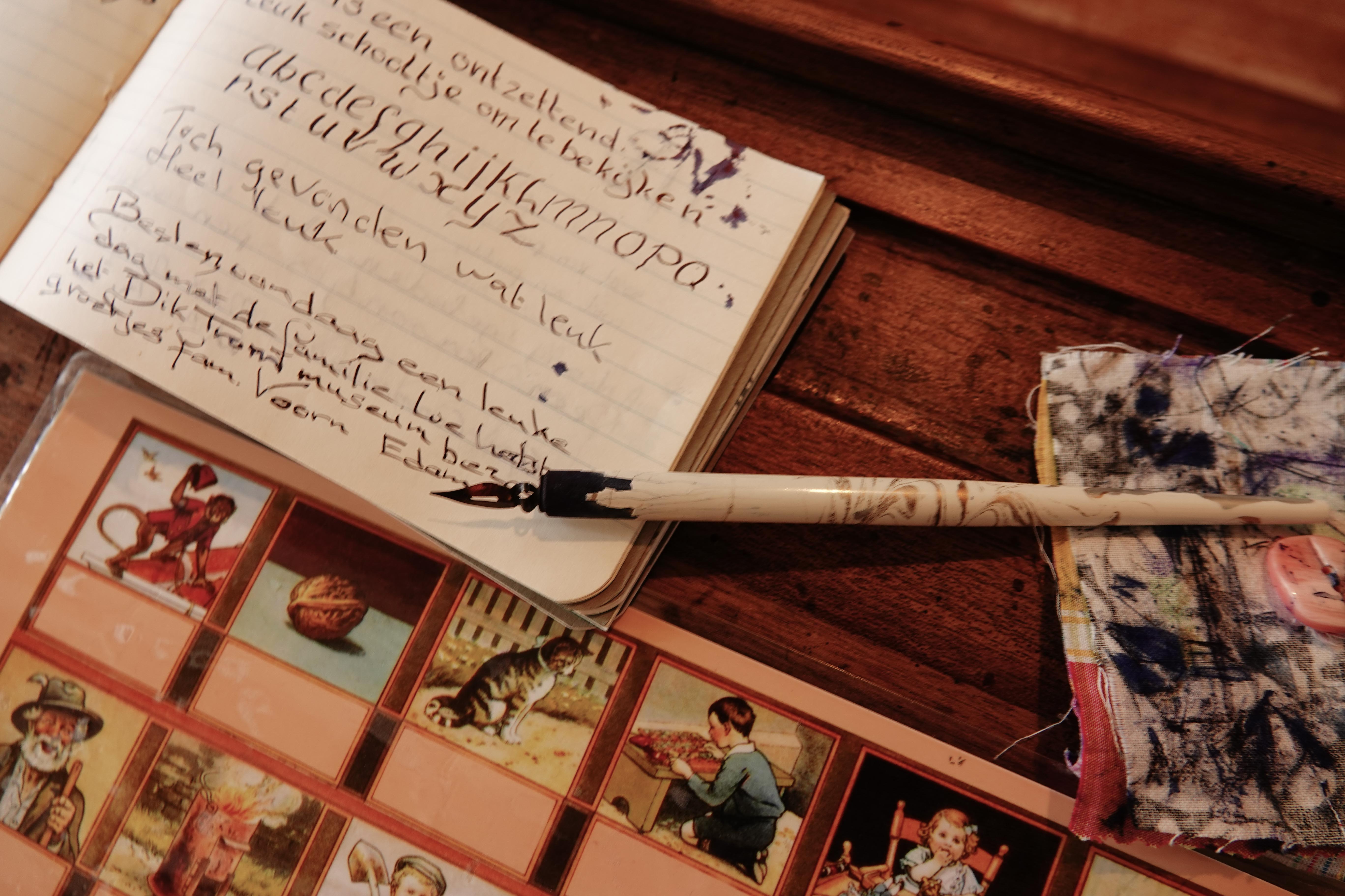 We konden daar ons hart ophalen aan vroeger tijden. De banken met schuifjes om de inktpotten mee af te sluiten, kroontjespennen met grijsgroene schriftjes waarin je mocht proberen om vlekkeloos te schrijven.