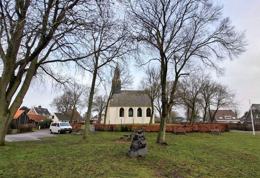 Dat was de naam van onze wandeling op de Wandelsite en inderdaad, we hebben genoeg zeeduinen beklommen. De start was bij het Witte Kerkje aan de Brink van Groet. Het is gebouwd op een terp.