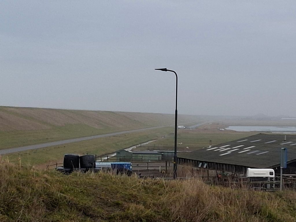 Daar zag je het beginpunt van de 5,5 km lange Hondsbossche- en Pettense Zeewering.
