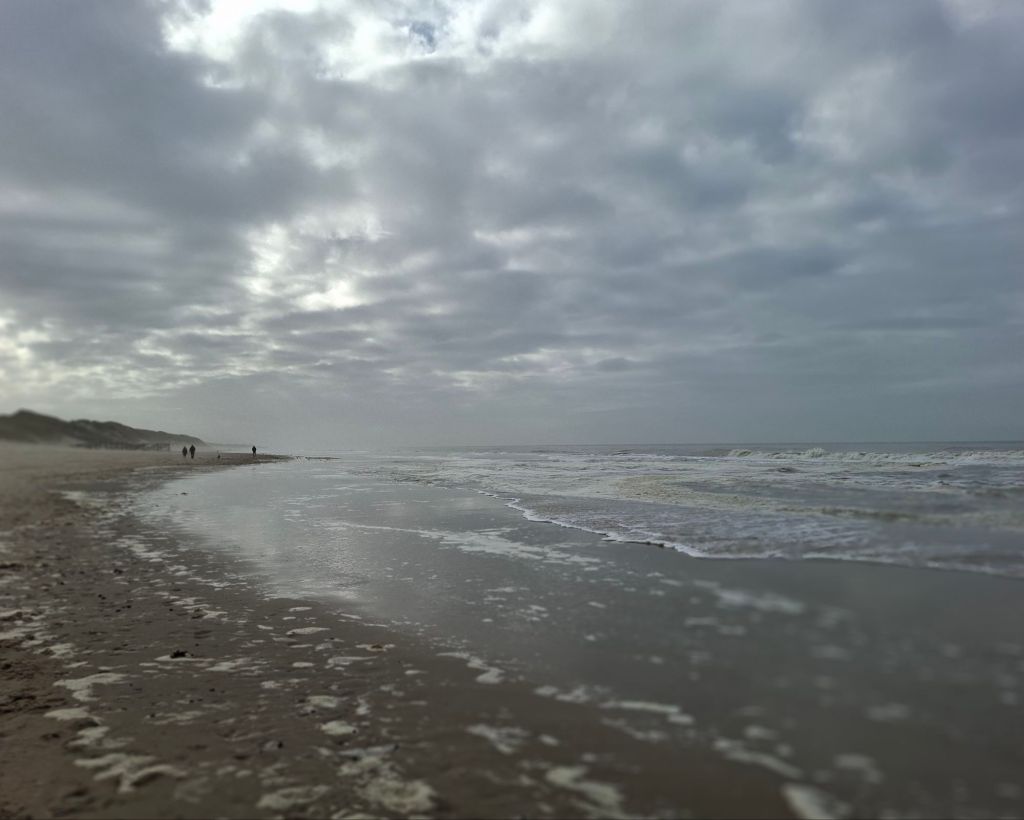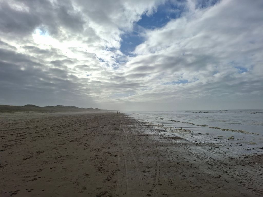 Op het strand aangekomen waagde de zon een kans om door de wolken te breken.