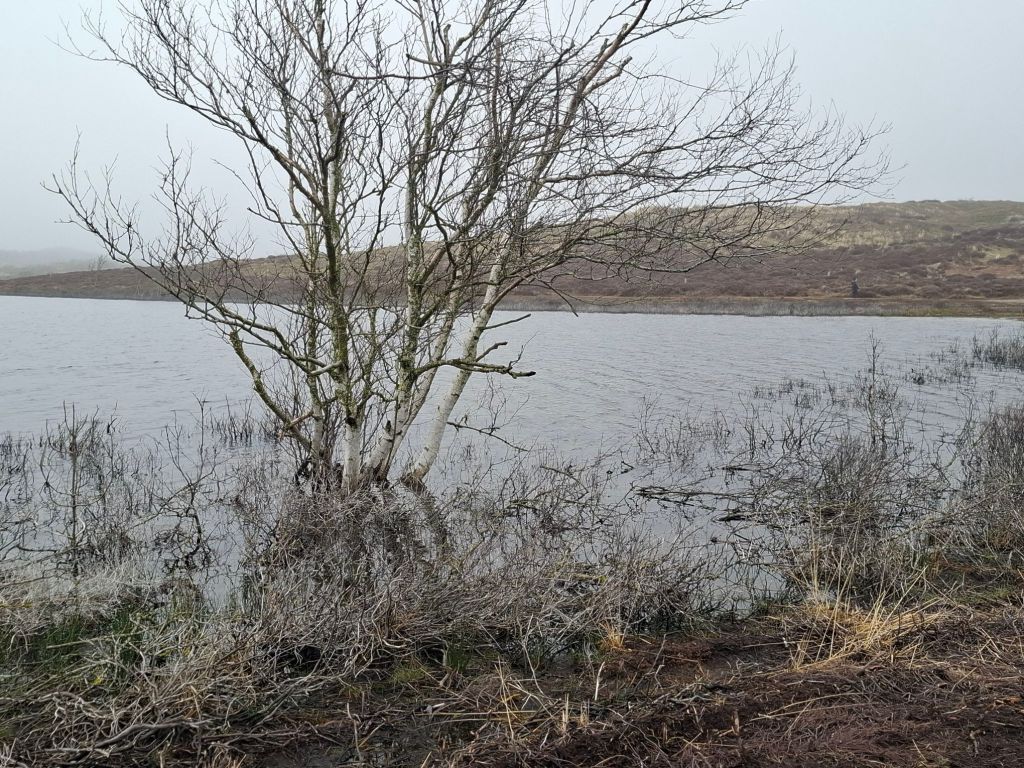 Na drie kilometer strand gingen we bij de Kerf de duinen weer in. De Kerf, is ook een kunstmatige inham in de duinen, net als we bij Camperduin al zagen, ooit gemaakt om als overloopgebied, van de zee te dienen. Hier is het alweer dermate dicht geslipt, dat de zee geen kans meer maakt om het duingebied binnen te komen.