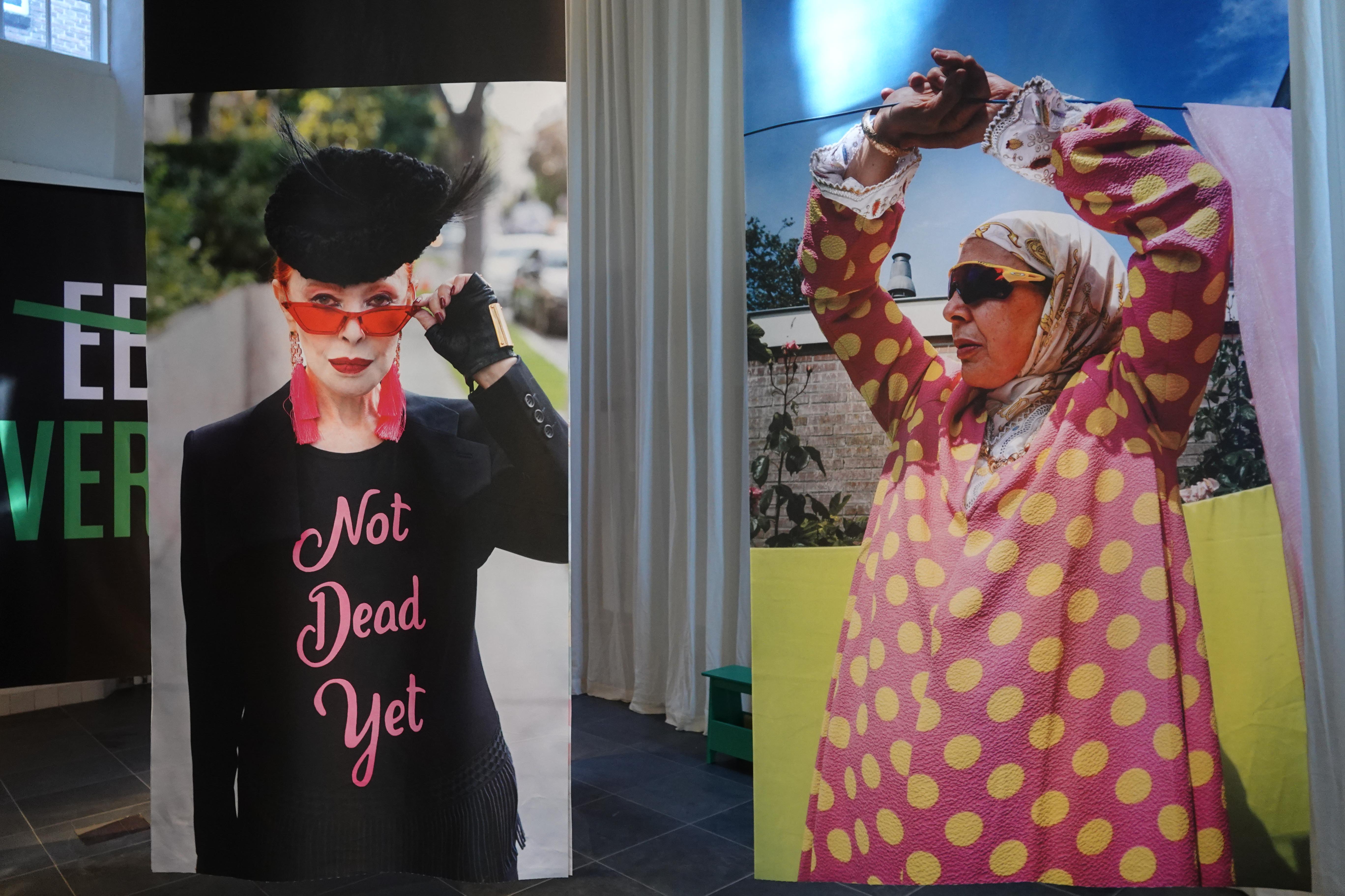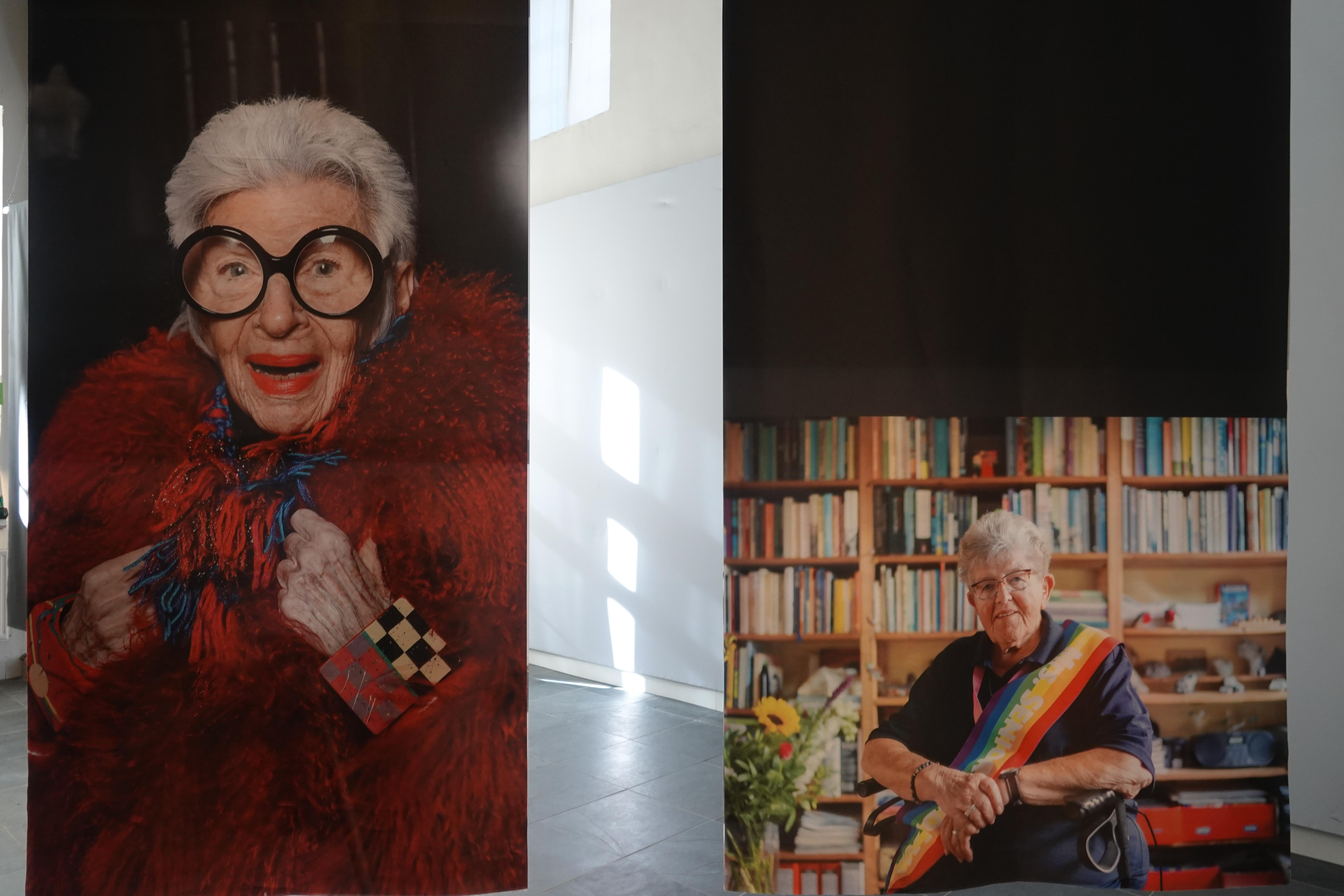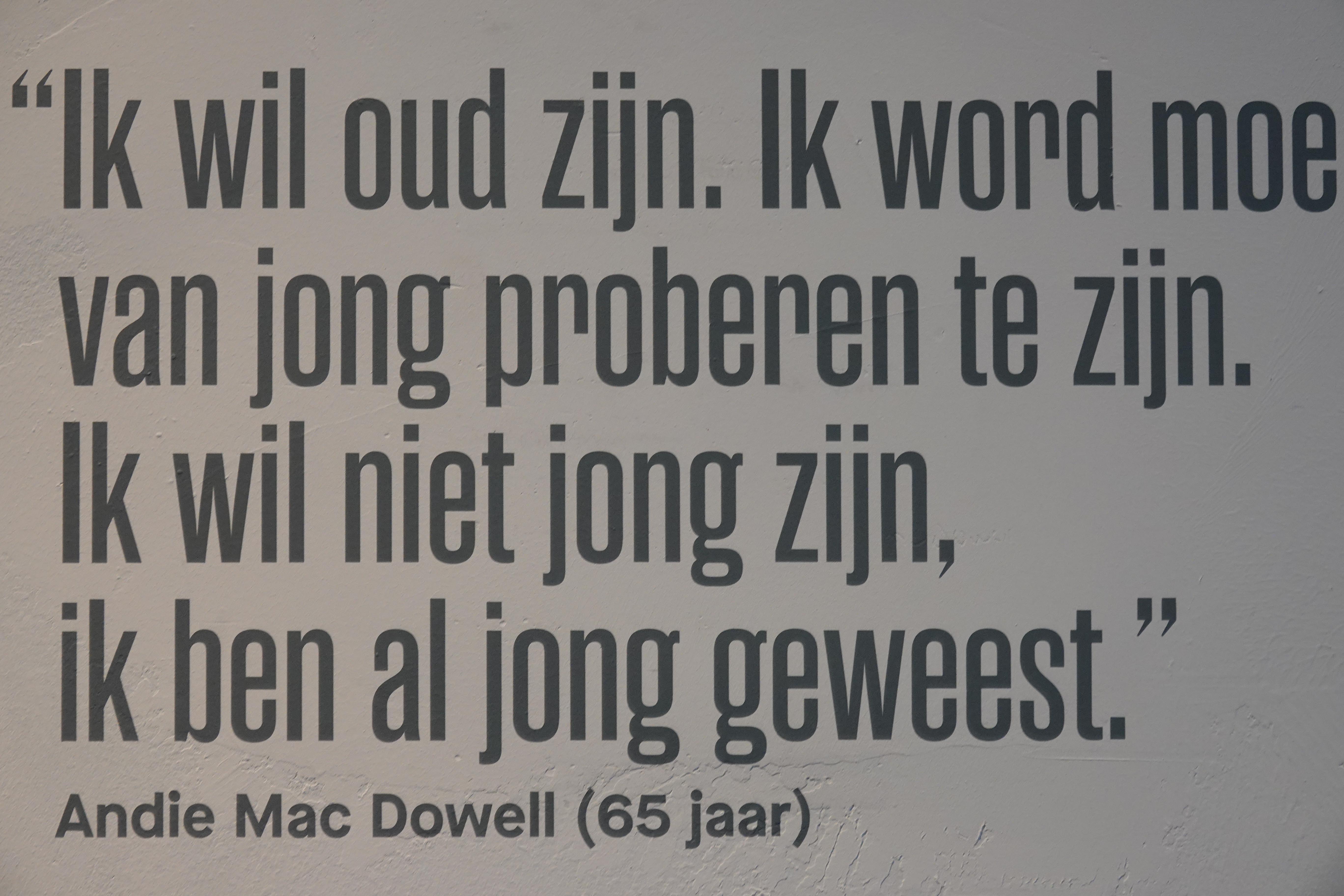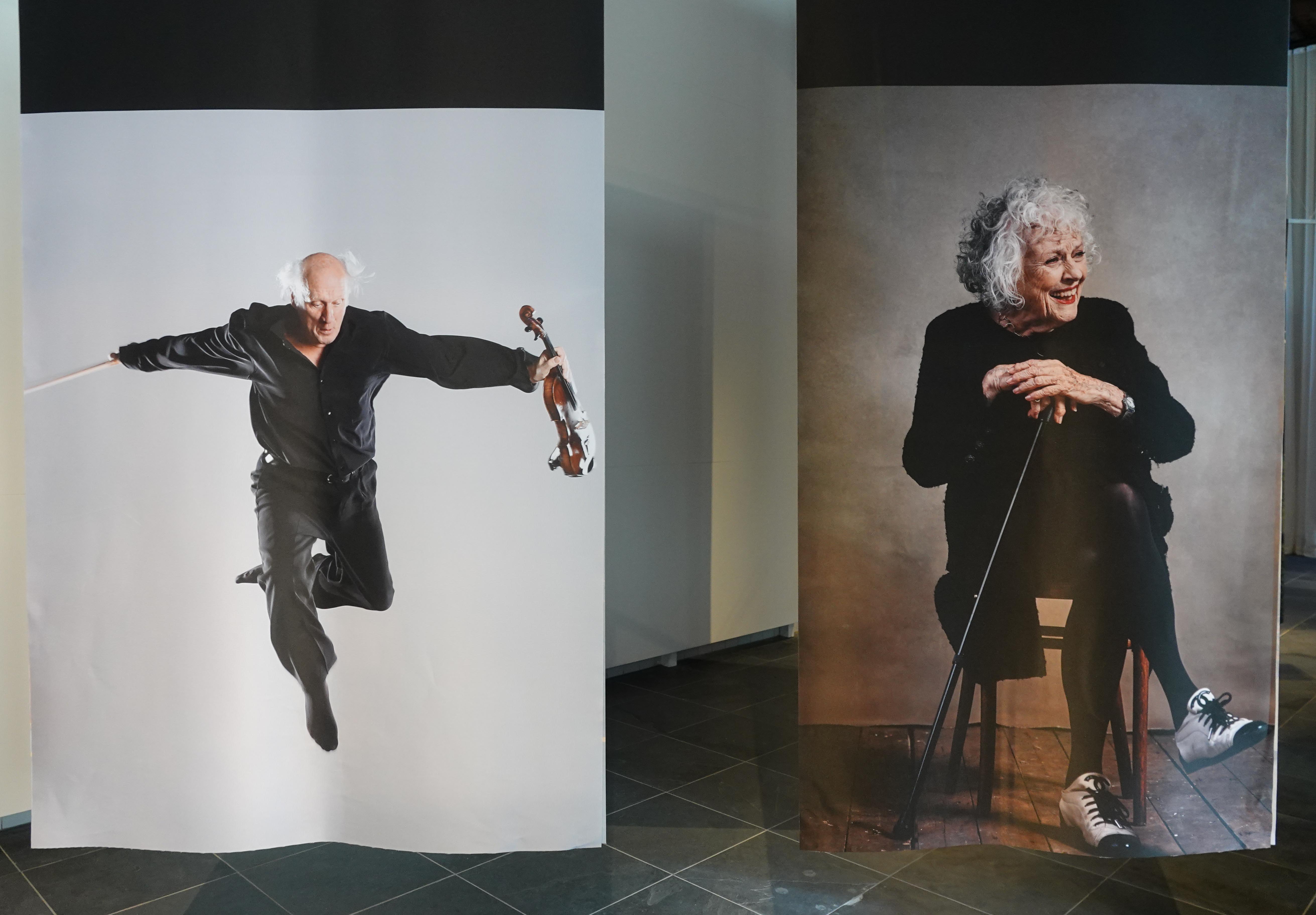 De foto’s waren in de ruimte op doeken opgehangen. Die doeken draaiden soms ook rond. Allemaal voorbeelden van mensen die de kunst van het ouder worden lijken te verstaan.