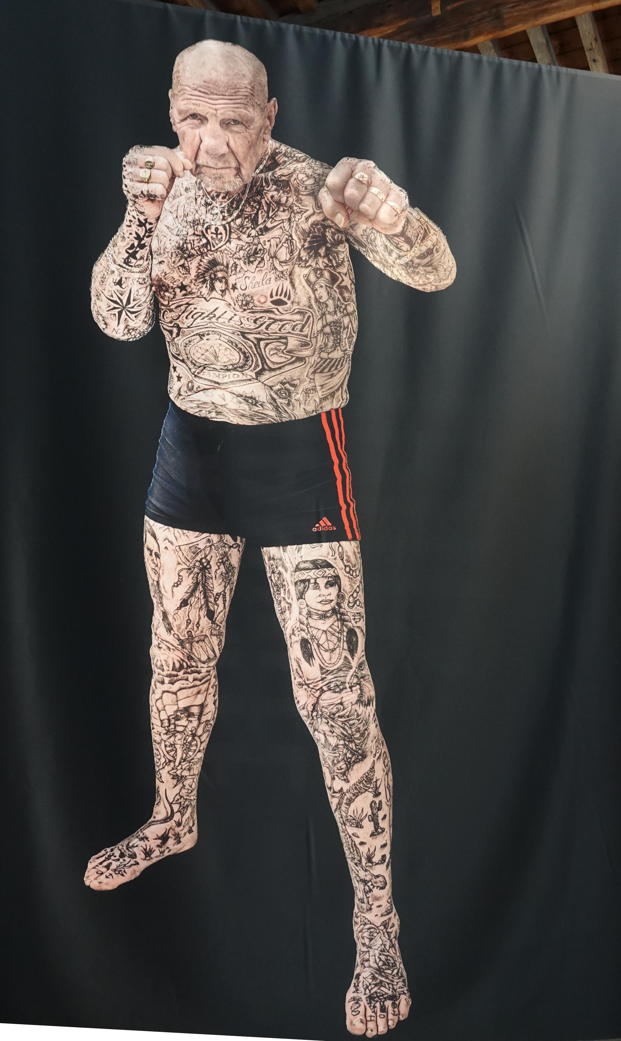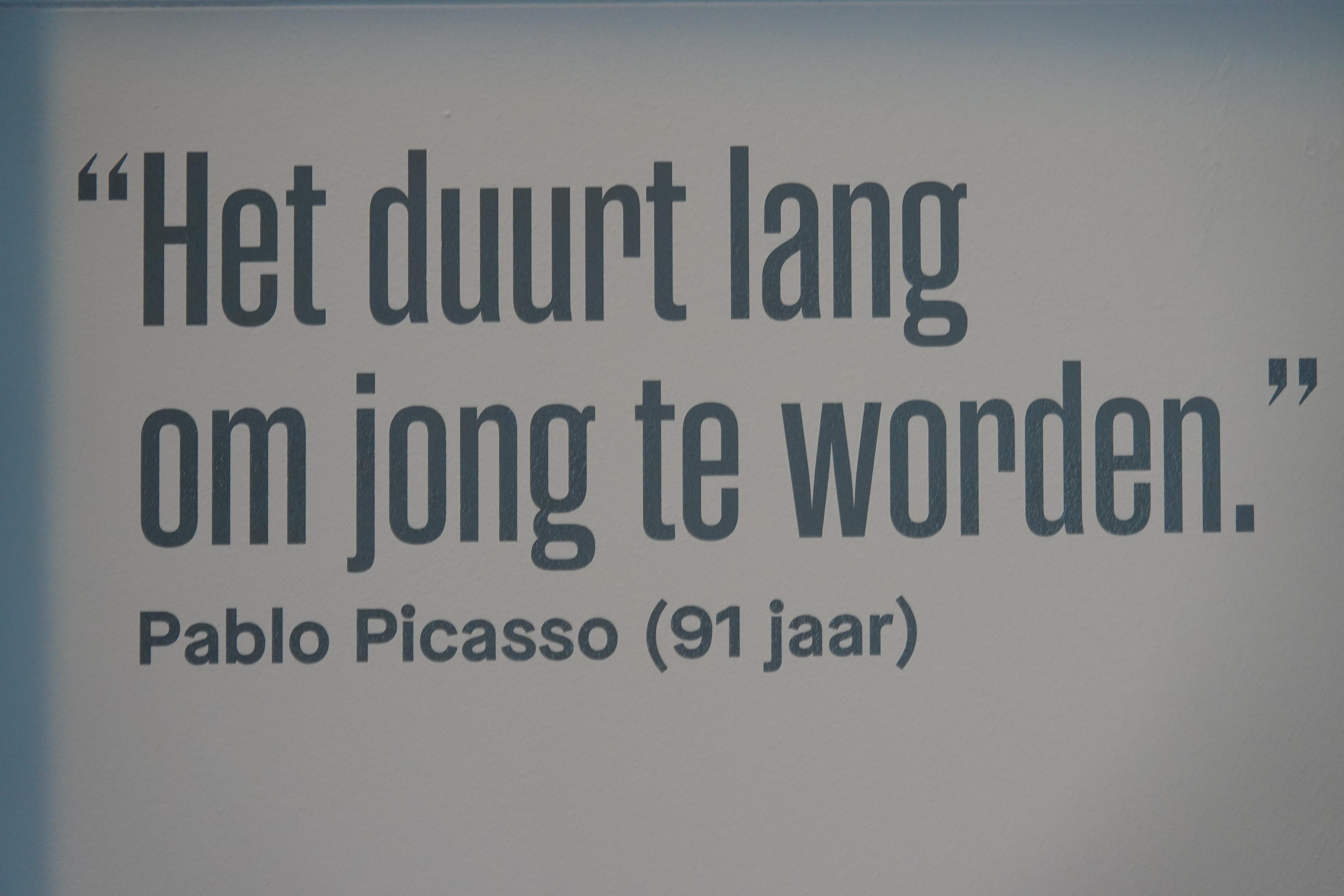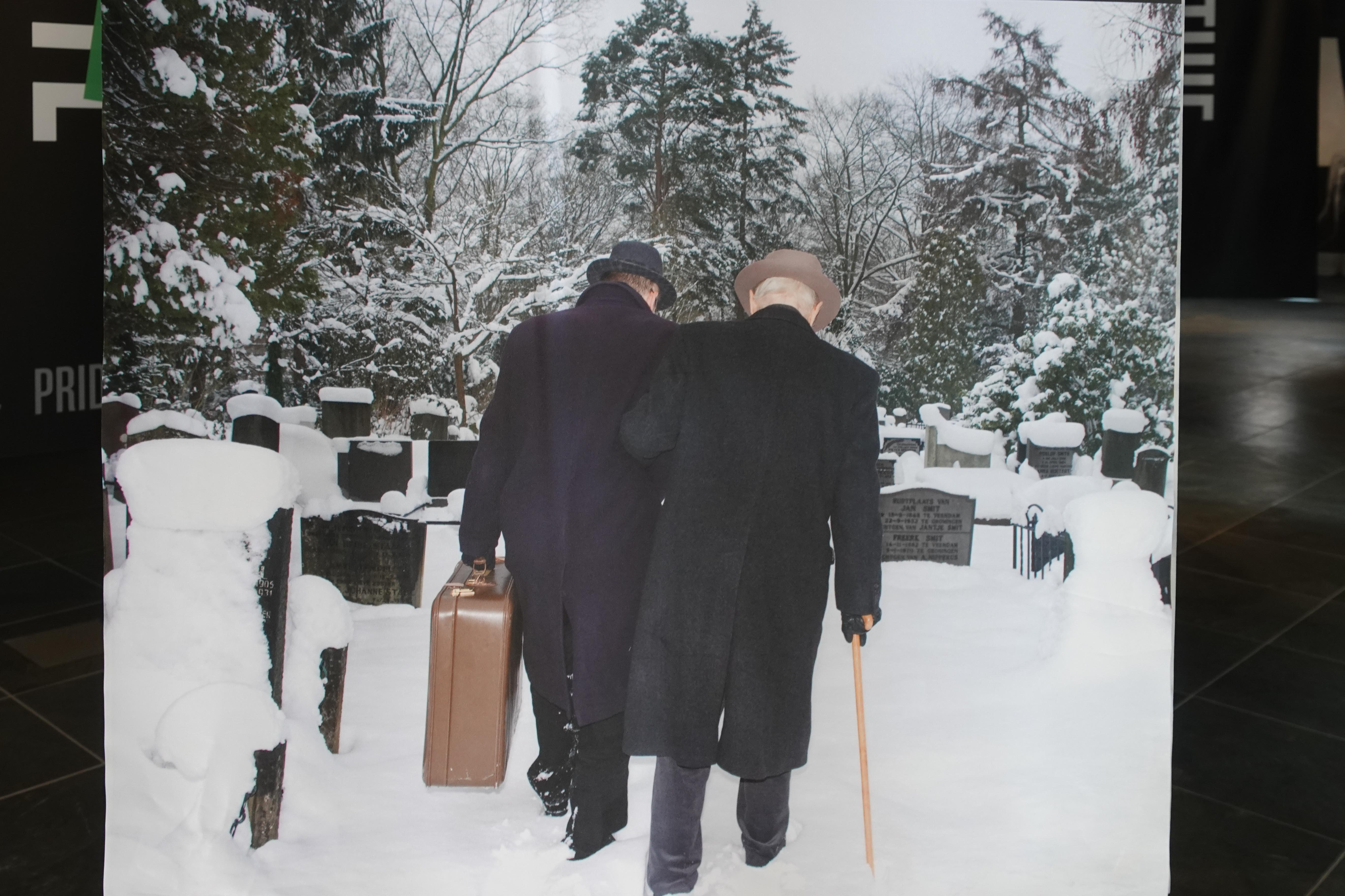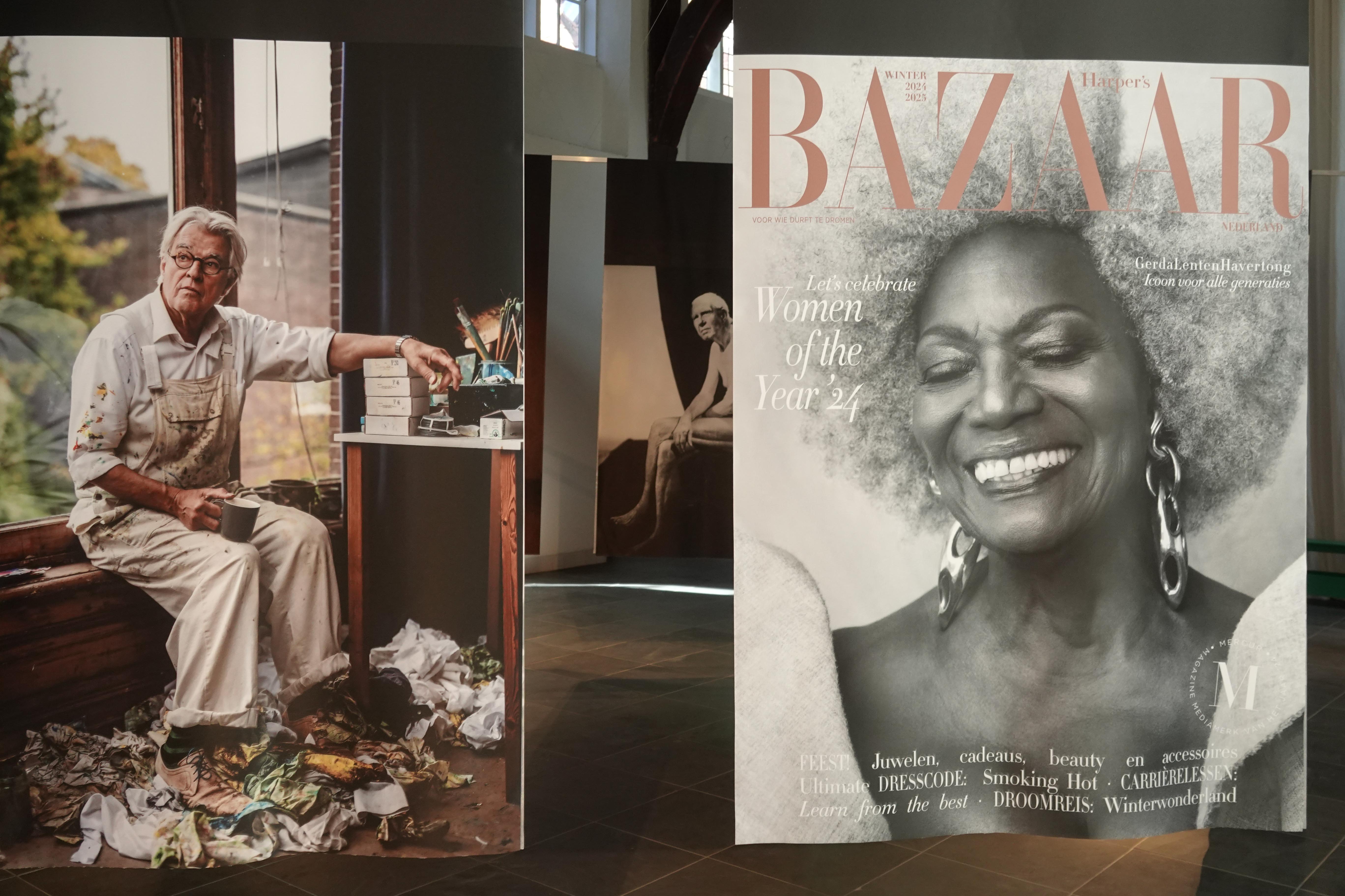 De foto’s waren in de ruimte op doeken opgehangen. Die doeken draaiden soms ook rond. Allemaal voorbeelden van mensen die de kunst van het ouder worden lijken te verstaan.