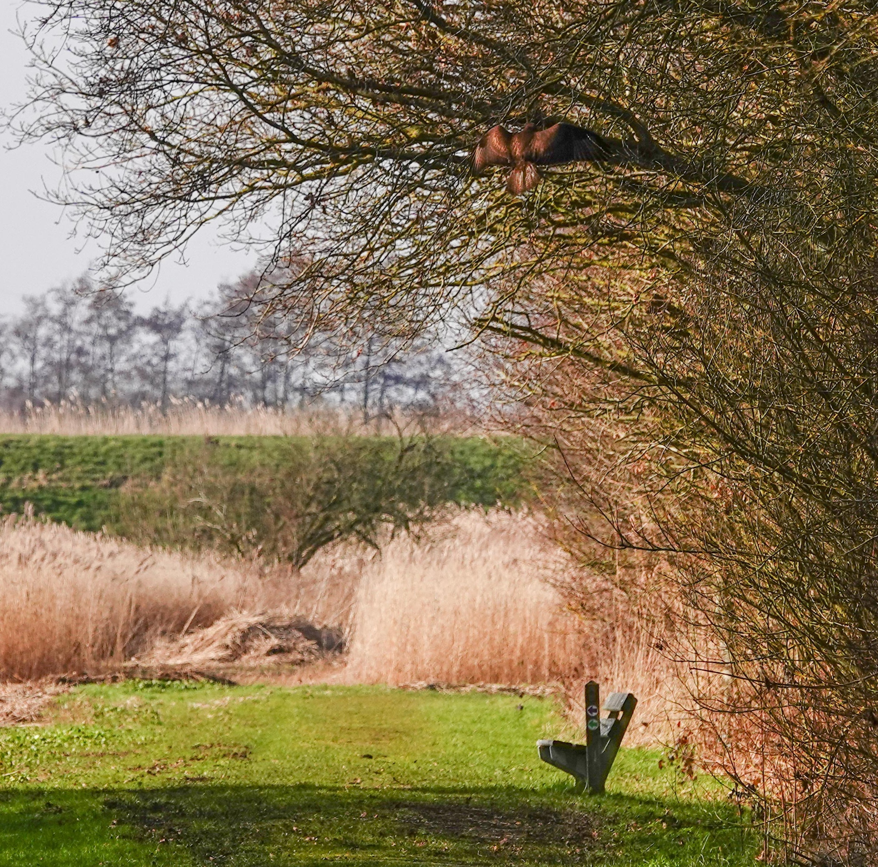 Al wandelend door het natuurgebied valt me op, dat ik nog bijna geen vogels hoor. Misschien was de buizerd daar debet aan, die wel heel laag overvloog.