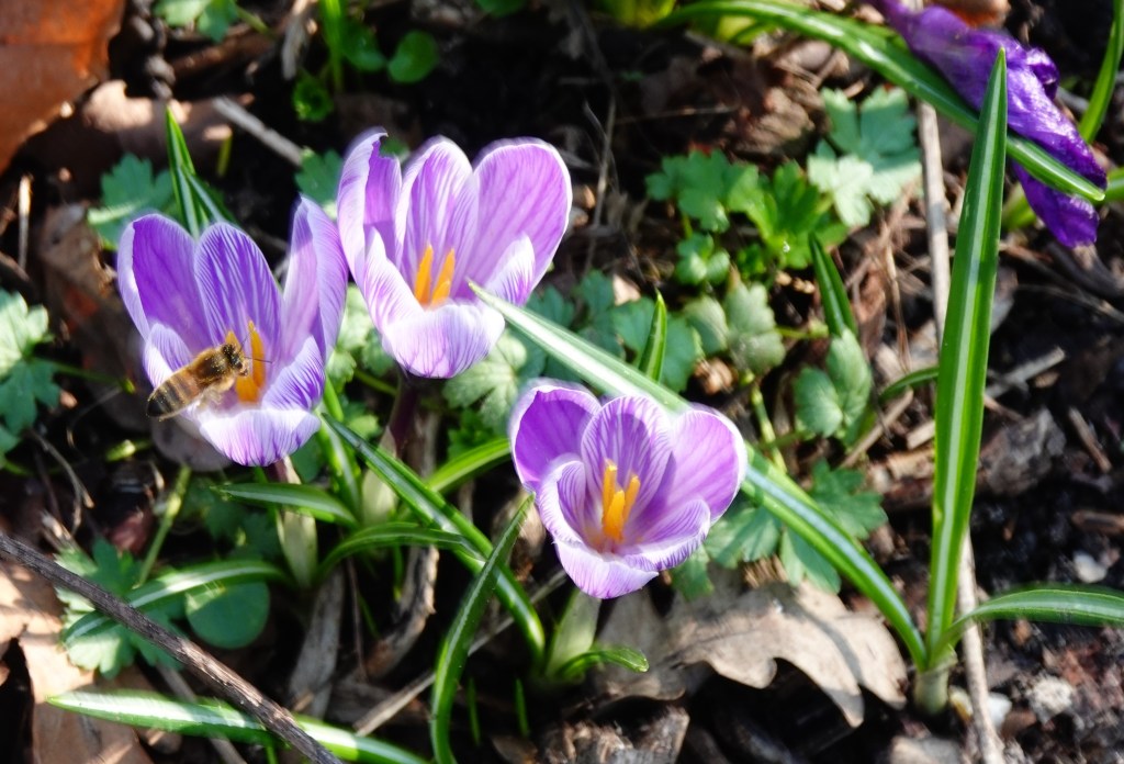 De afgelopen dagen wordt er wat af genoten van het mooie weer. De zon is weldadig, de temperatuur is lekker, bijna geen wind. Jassen kunnen uit. Terrasjes worden bezocht. Wat wil een mens nog meer. Ook ik genoot uit volle teugen en zag tot mijn plezier het mooie geel van de narcissen en krokusjes in ons park.