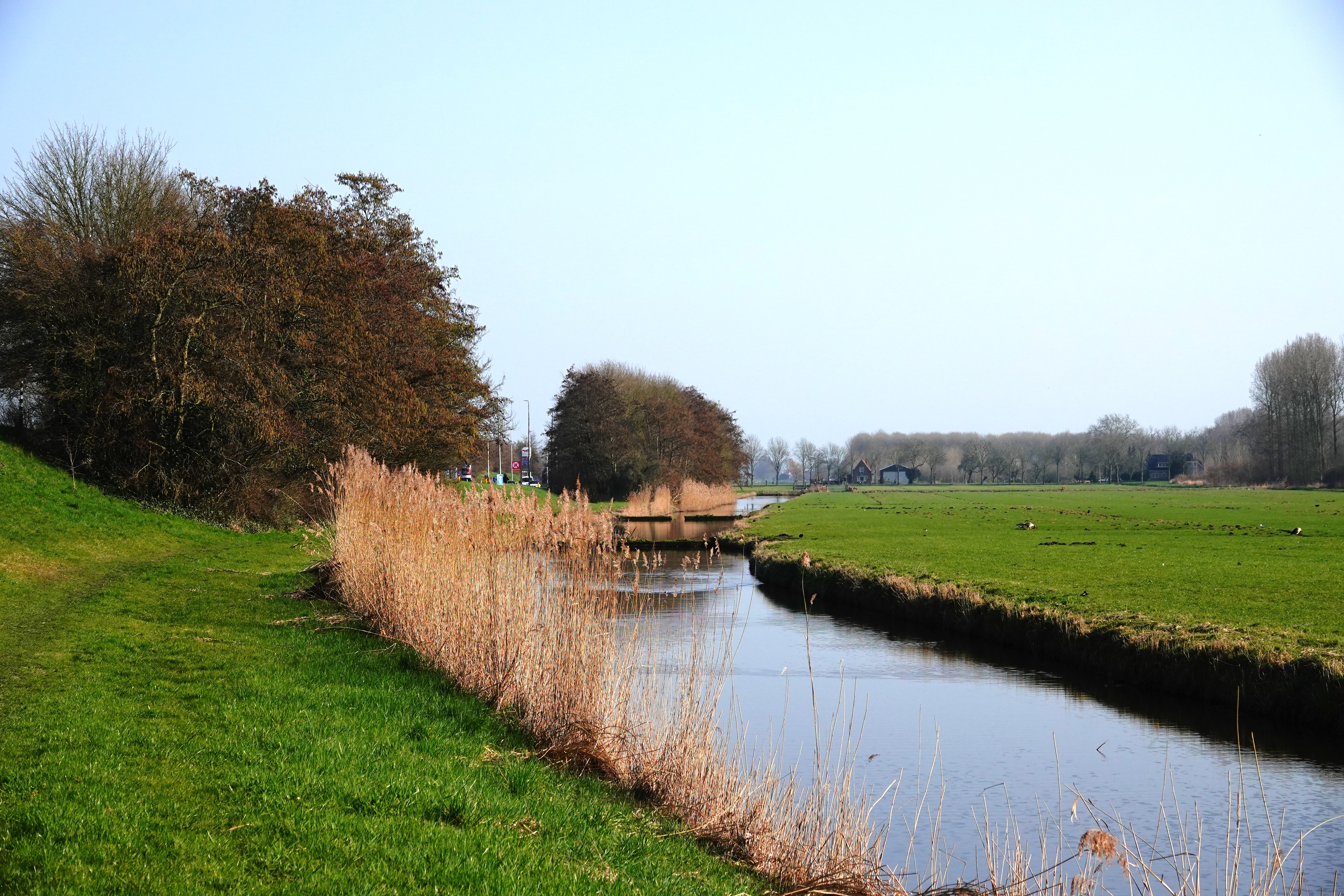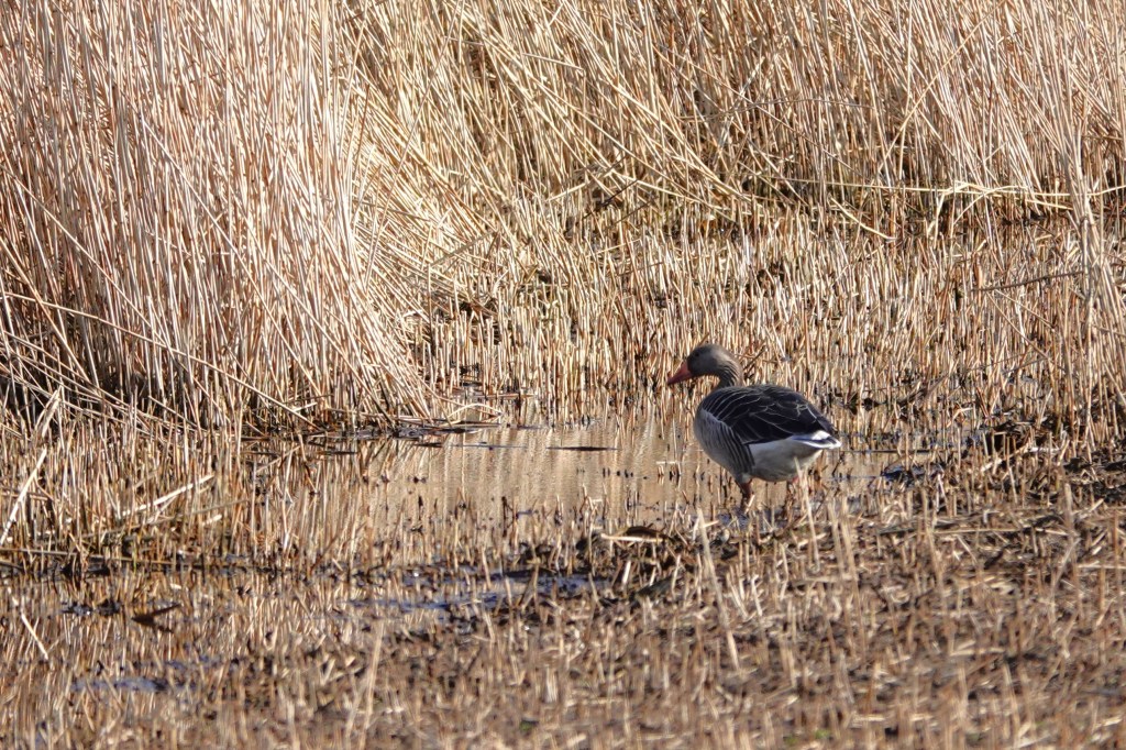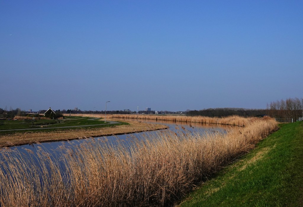 Ik kwam buiten langs de rietlanden, mijn lievelingsplek, maar er is helaas een bruggetje weggehaald, waardoor ik een grotere ronde eromheen moest wandelen.