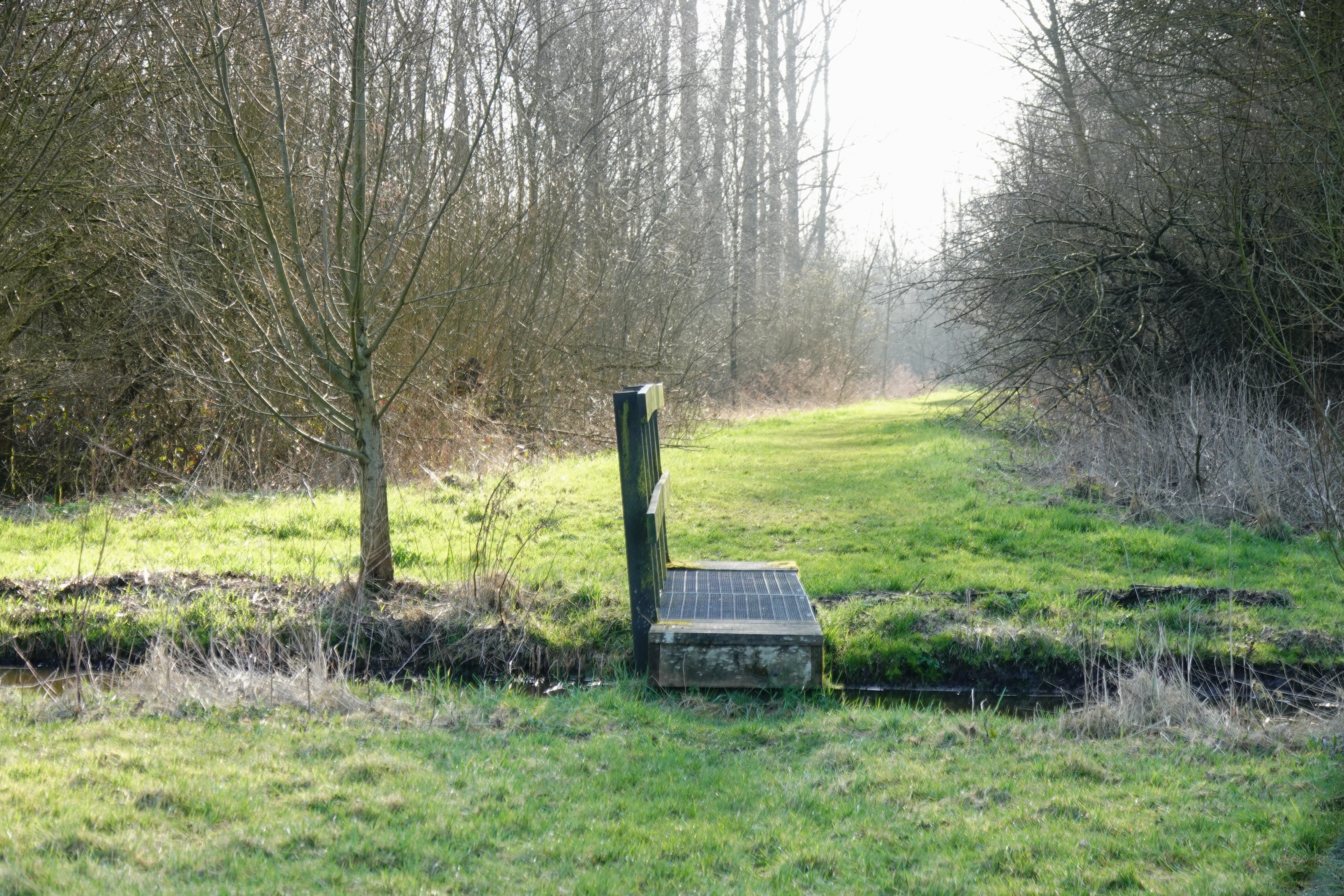 Er is wél een bruggetje gemaakt dat twee gedeeltes van het bos met elkaar verbindt. Ik stak het weiland over en kwam in het bos, dat het dichtste bij ons dorp ligt. Zo was ik bijna helemaal onverhard rondgelopen. Bijna op het laatste stukje na.