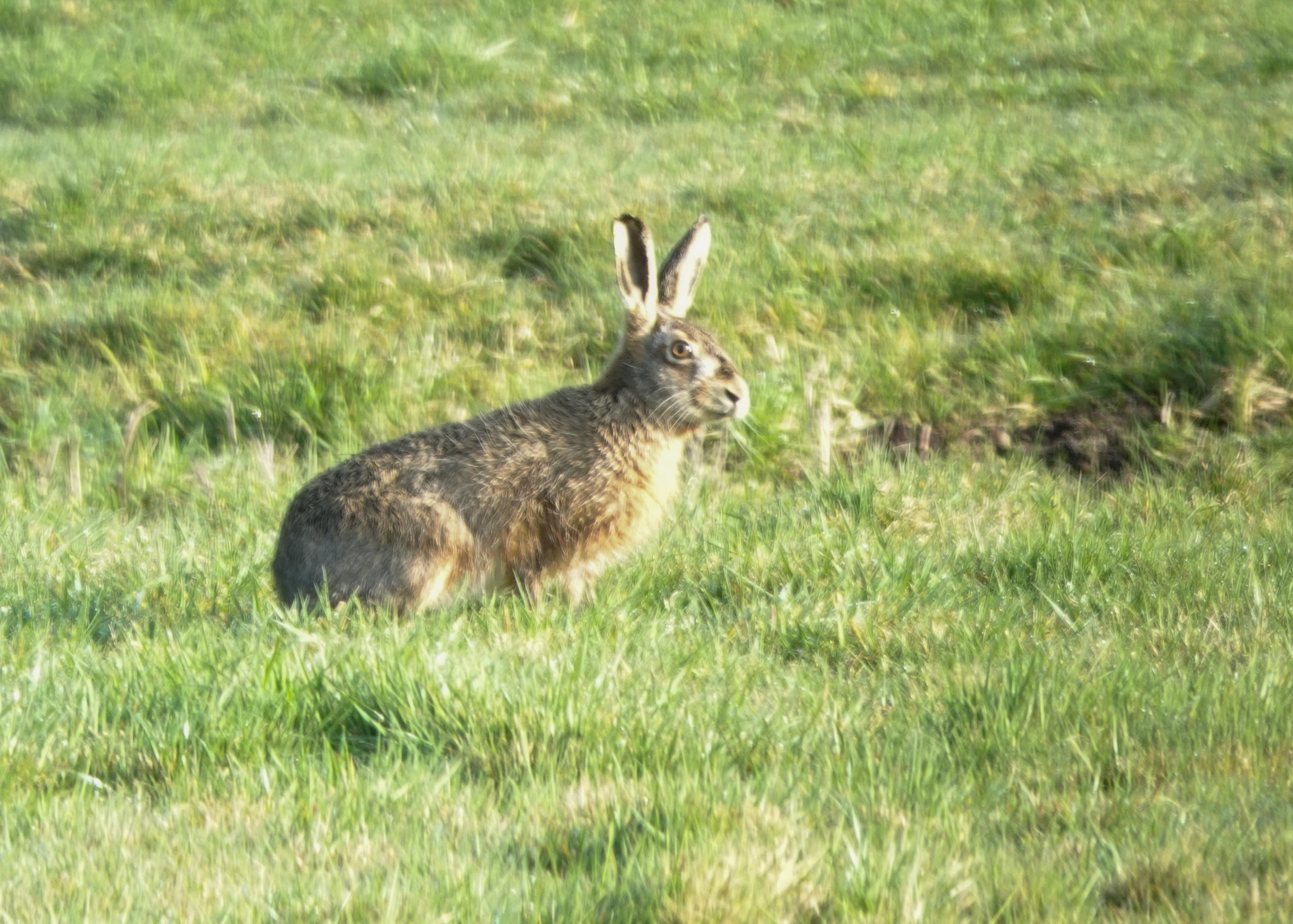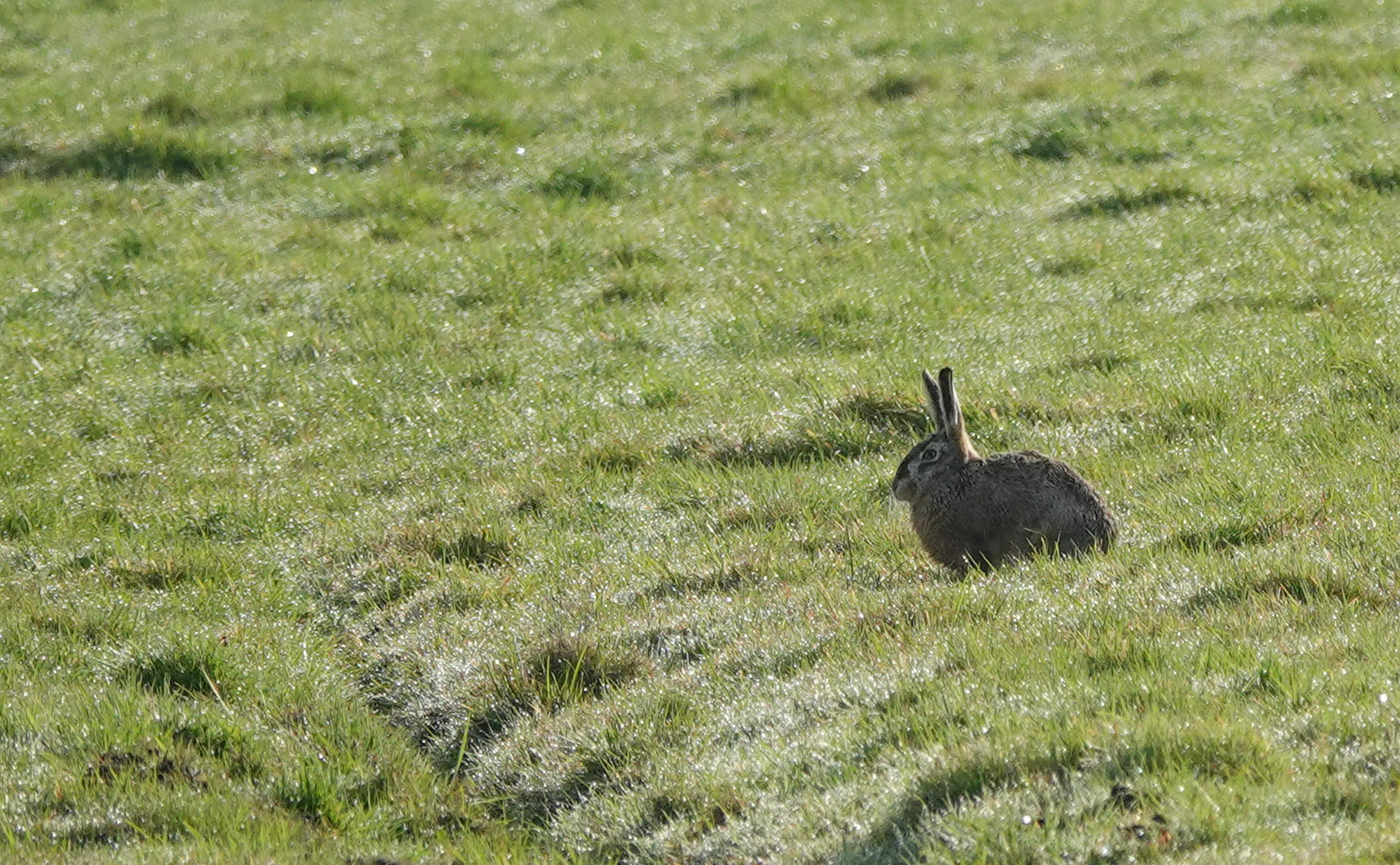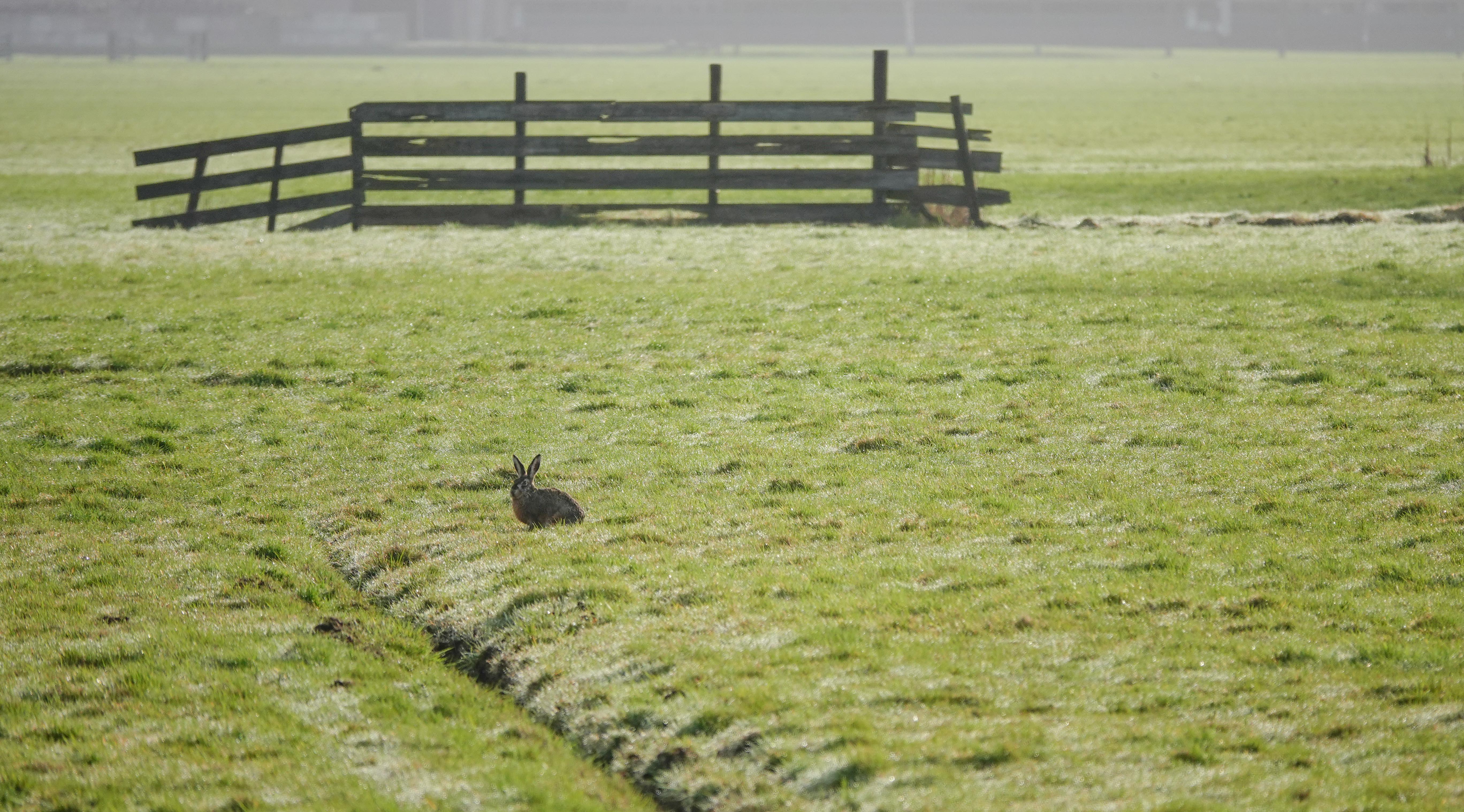 In het land zag ik een groepje rammelende hazen. Ze waren lekker aan het stoeien, maar ze kregen helaas erg in mij. Toen bleef er nog maar één haas over in het zicht.