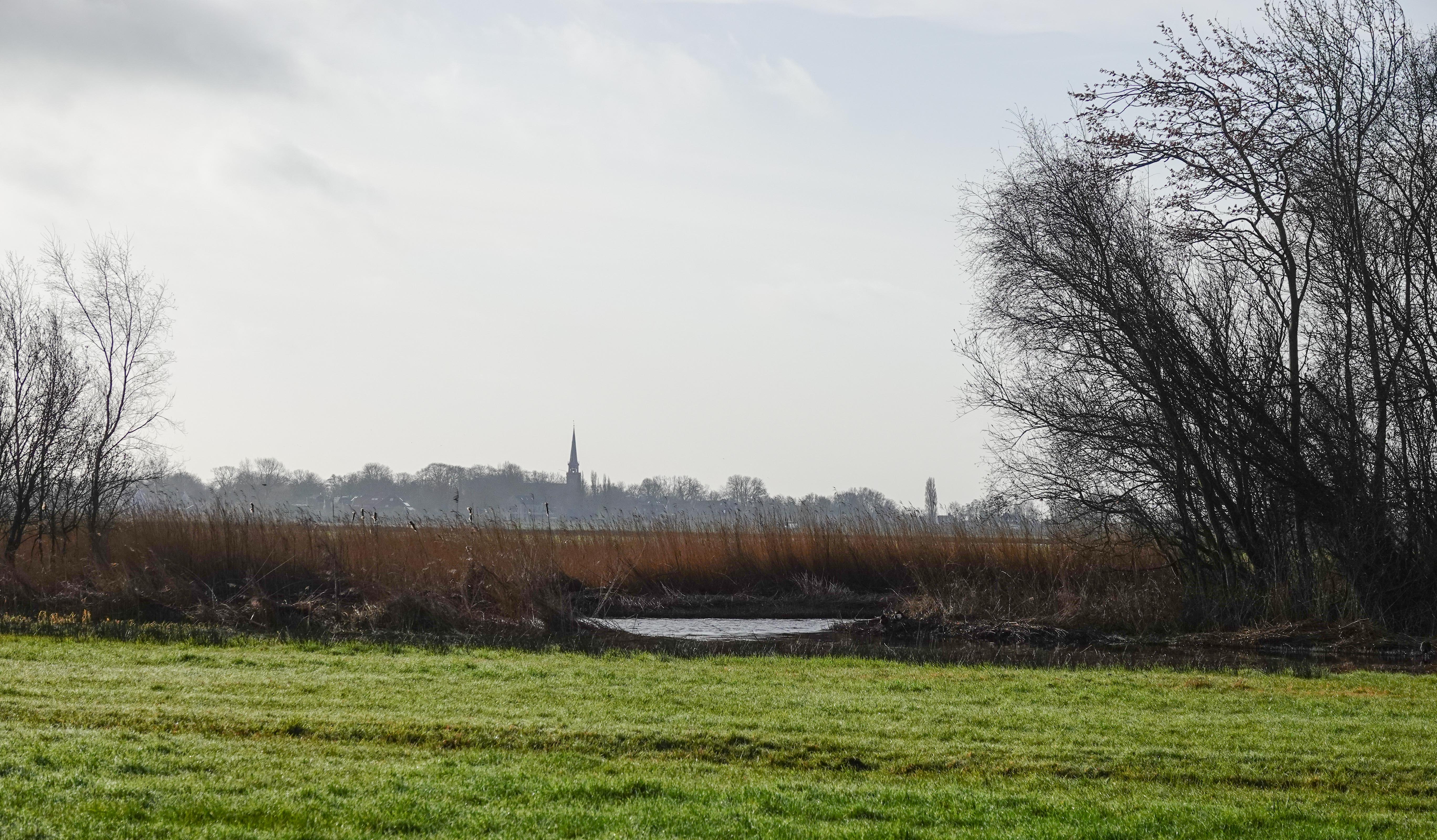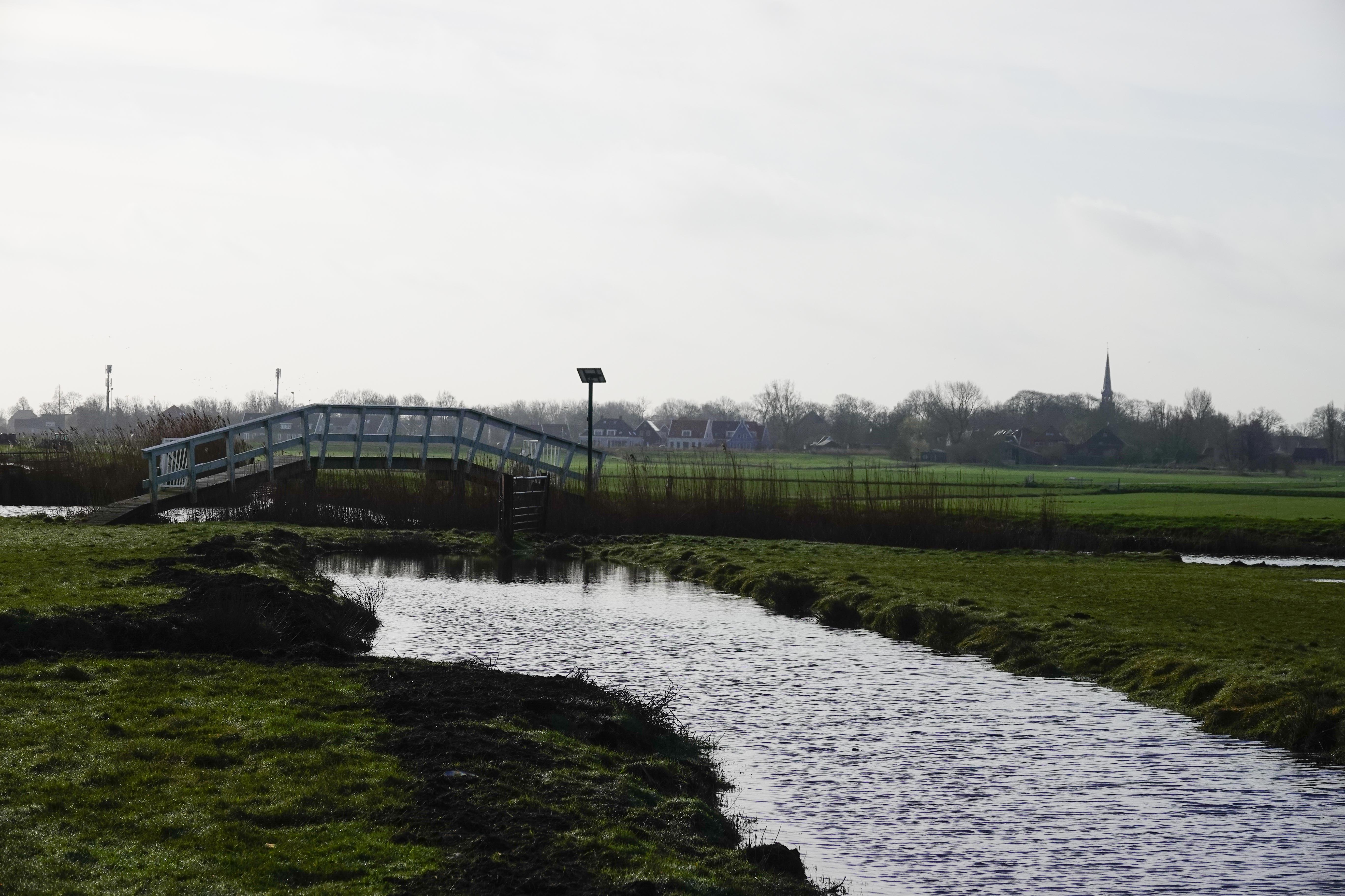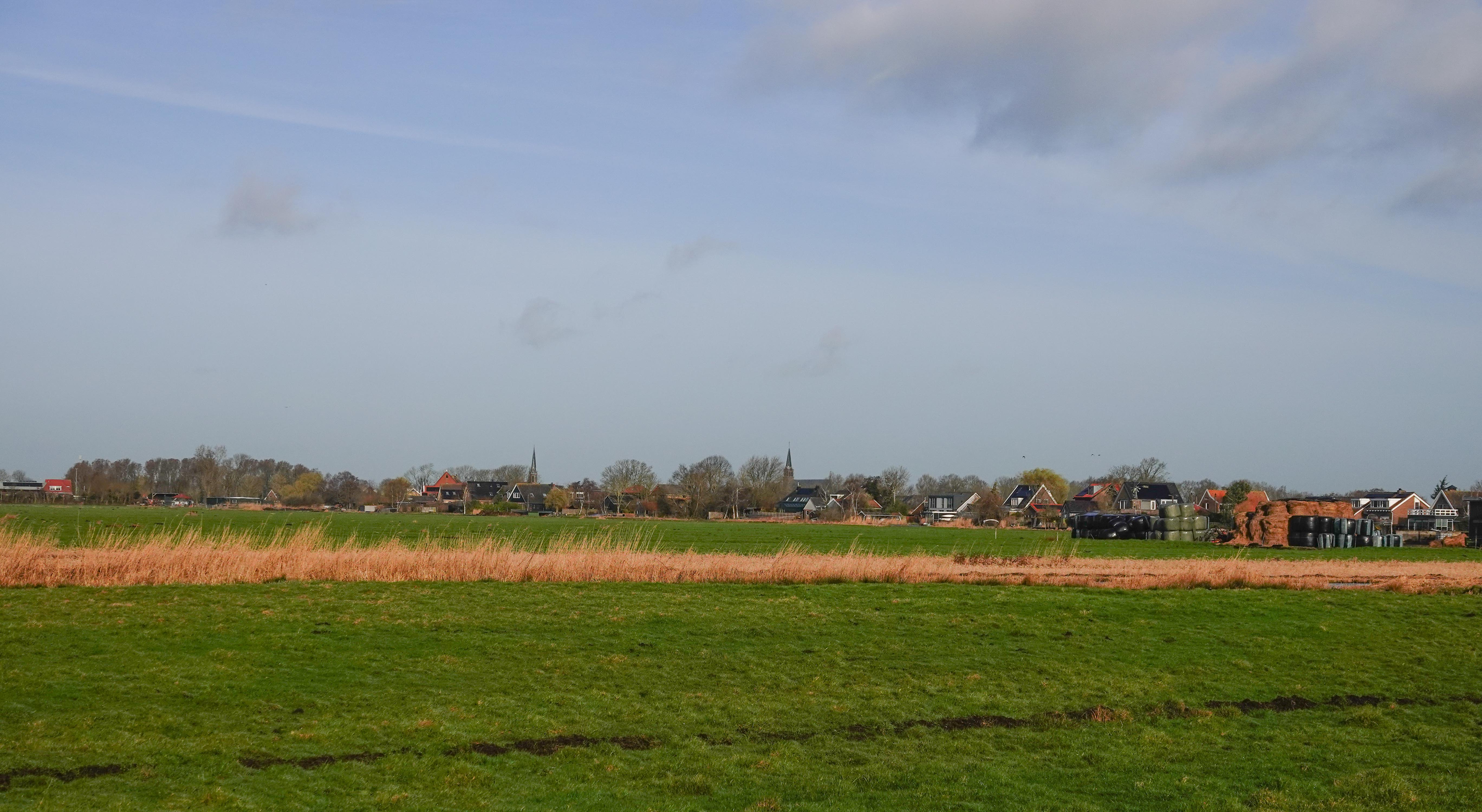 Zo ongeveer eén keer per jaar maak ik een wandeling naar Broek in Waterland. Altijd speciaal, al helemaal nu mijn dochter er sinds een paar jaar woont. De route daar naar toe over de weg met de auto en ook via het fietspad is 8 km. Maar door het land is het maar 5 km. Dat grote verschil zit hem in een meer, de Leek, waar je met de fiets omheen moet. Te voet kun je vóór het meer langs door de weilanden. Het is een route die via witte bruggen en hekjes loopt. Echt dwars door het land. Helaas is deze route tussen 15 maart en 1 juli niet toegankelijk i.v.m. het broedseizoen. Vandaar dat ik die wandeling nog net op de valreep kon doen. Je loopt dus van het dorp met de twee kerktorens naar het dorp, dat er maar eentje heeft. Net buiten ons dorp heb je het zicht op beiden.