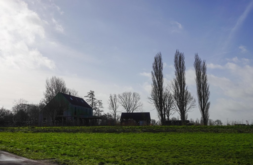 De populieren, die wel wat van cipressen hebben, zorgden even voor een Italiaans sfeertje, voordat ik de bebouwing in liep.