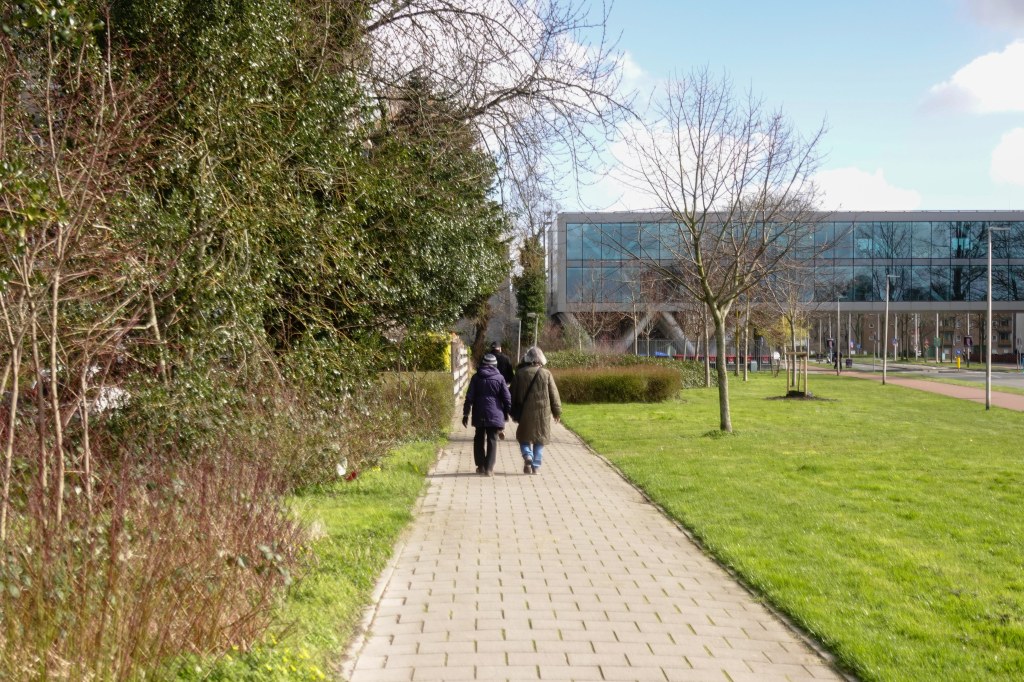 Door een stukje stadspark zagen we de gebouwen liggen van het vroegere St. Lidwinaziekenhuis, waar mijn kinderen geboren zijn. Nu is het een appartementencomplex en is het er heerlijk wonen, weet ik uit de eerste hand.