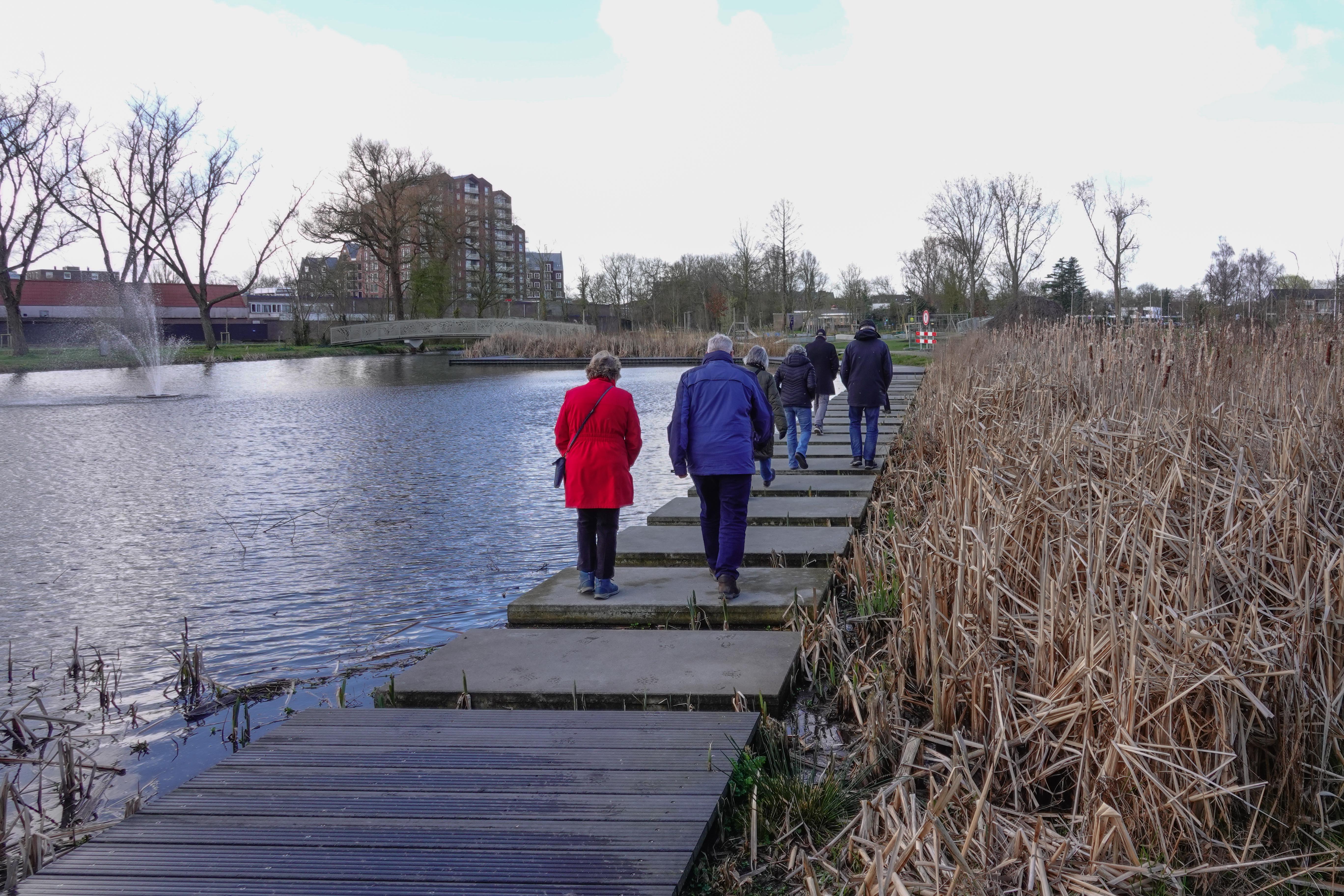 liepen we door het Burgemeester Kooijmanpark, dat zo te zien helemaal nieuw wordt aangelegd. De leuke stapstenen en een nieuwe brug waren al klaar.