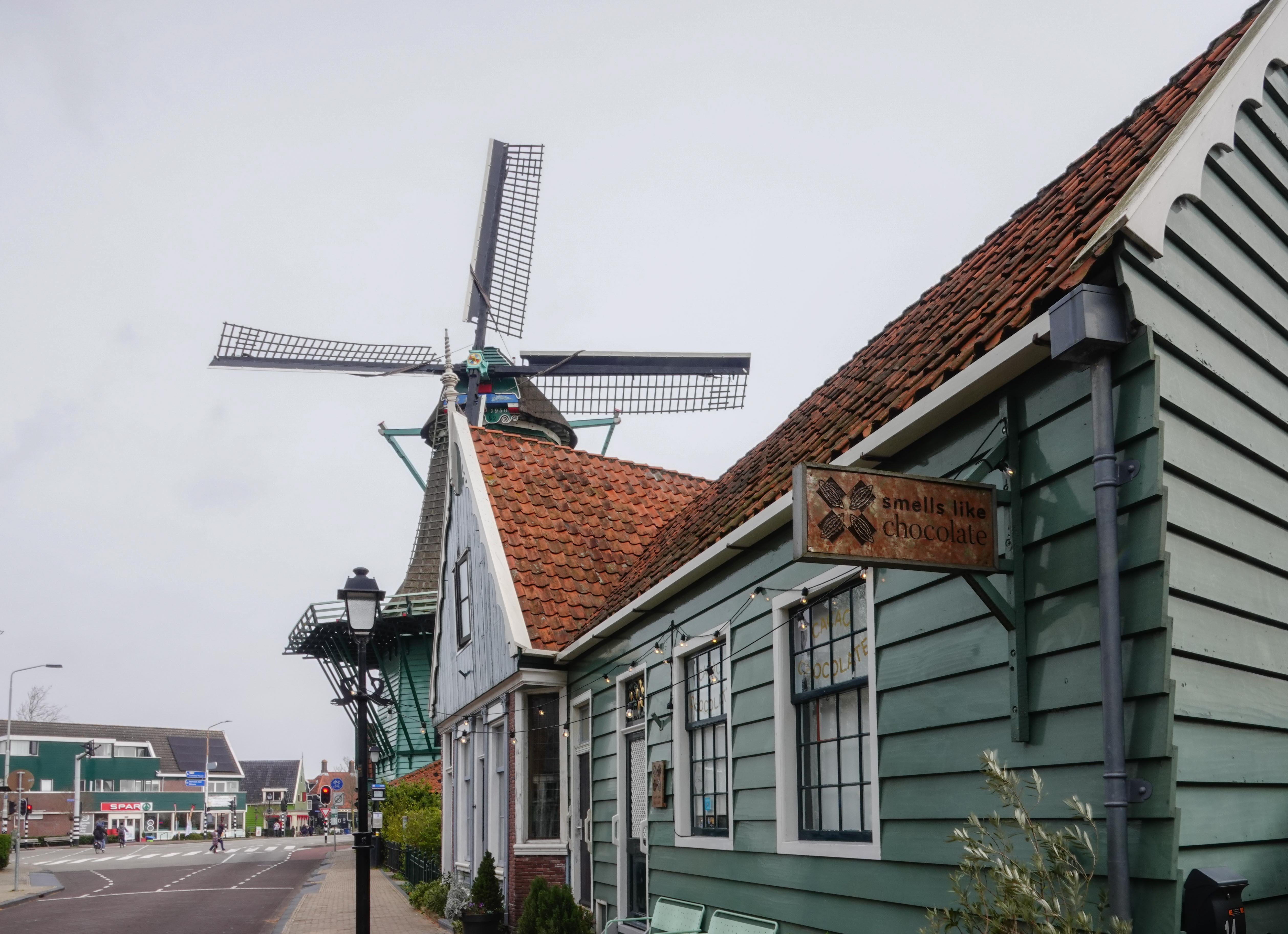 Om half 11 kwamen mijn oud-studievriend R en ik aan op station Zaandijk. We wandelden door de wijk Koog aan de Zaan. Daar zie je hoe de woonwijk om de industrie heen is gebouwd. Je merkt het ook aan de cacaolucht, die je ruikt. Een echt industrie-stadje.