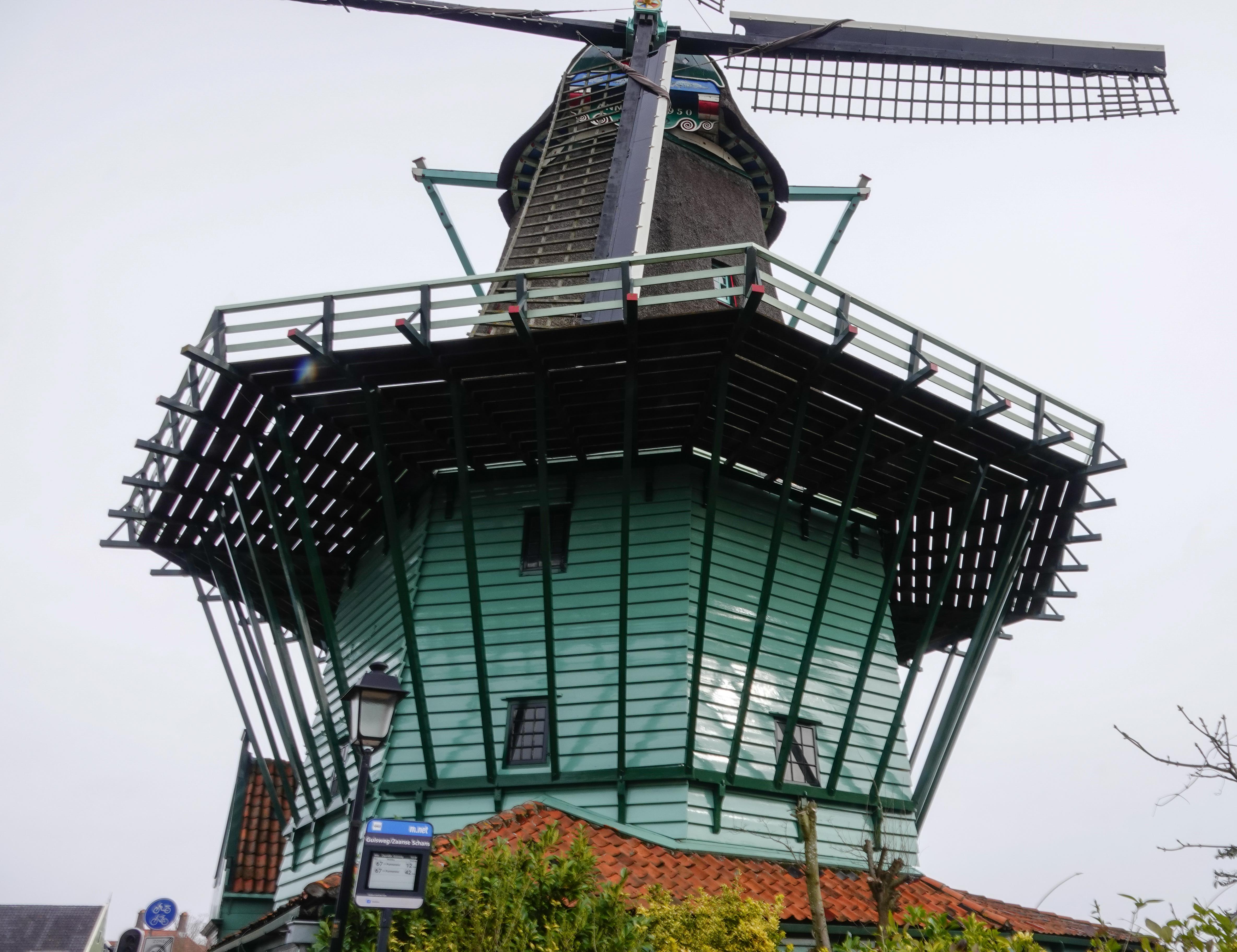 We kwamen uit bij meelmolen de Bleeke Dood, die op de hoek ligt bij de brug richting de Zaanse Schans.