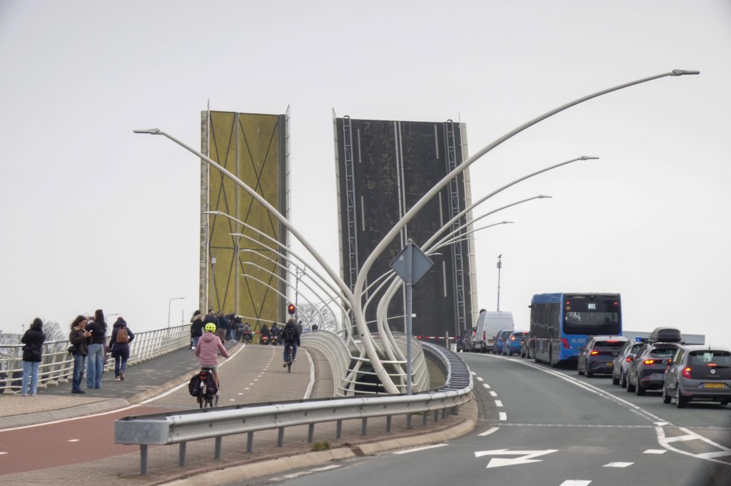 De brug over de Zaan, die we nog moesten oversteken was dicht (of open, wat je wilt).
