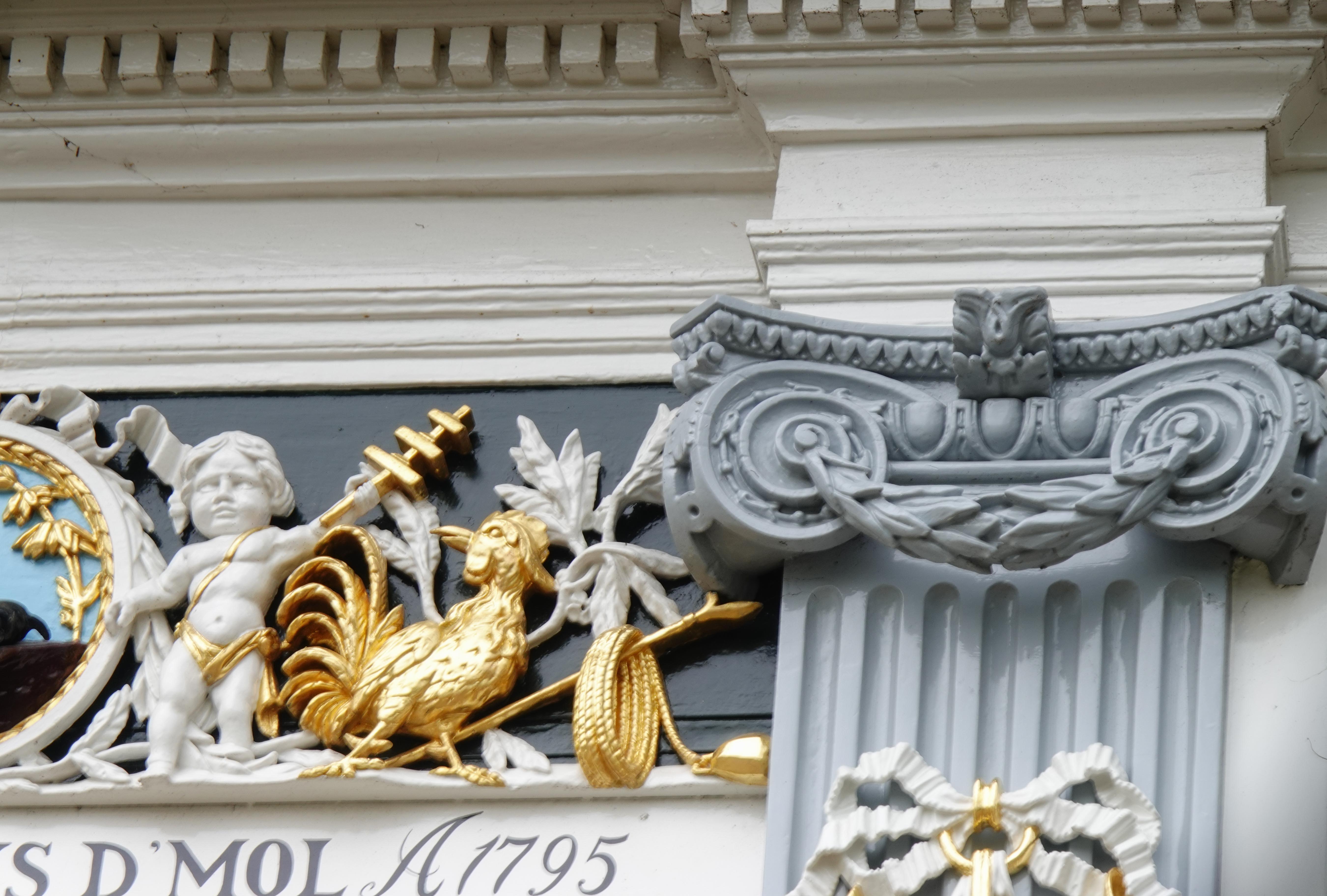 Een diversiteit aan details: bijzondere makelaars op de daken, protserige deurposten met veel klatergoud, mooie Delfts-blauwe tegeltjes met Bijbelse voorstellingen, materialen om koek te bakken en beschilderde Friese doorlopers.