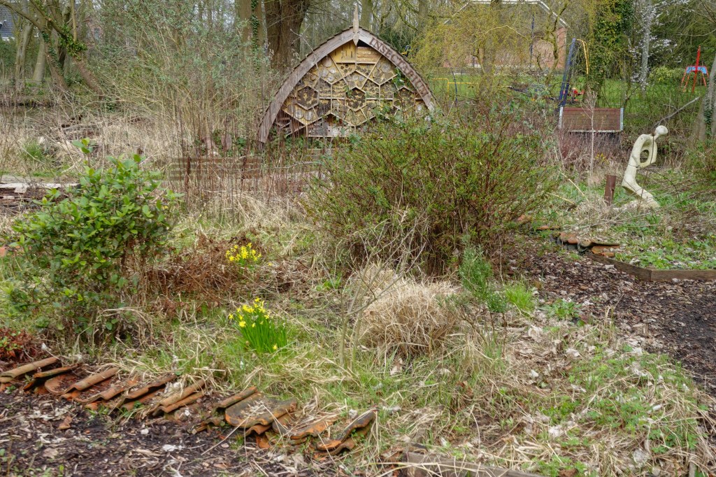 De hele dag stond in het teken van de tuin. En dan te bedenken, dat ik geeneens een tuin heb. Eerst deed ik een uurtje vrijwilligerswerk in de insektentuin. Langzaam zie je het verdroogde spul plaatsmaken voor vers groen. Mooi om te zien hoe onder de bladeren en verdroogd gras al volop nieuwe plantjes boven de grond komen.