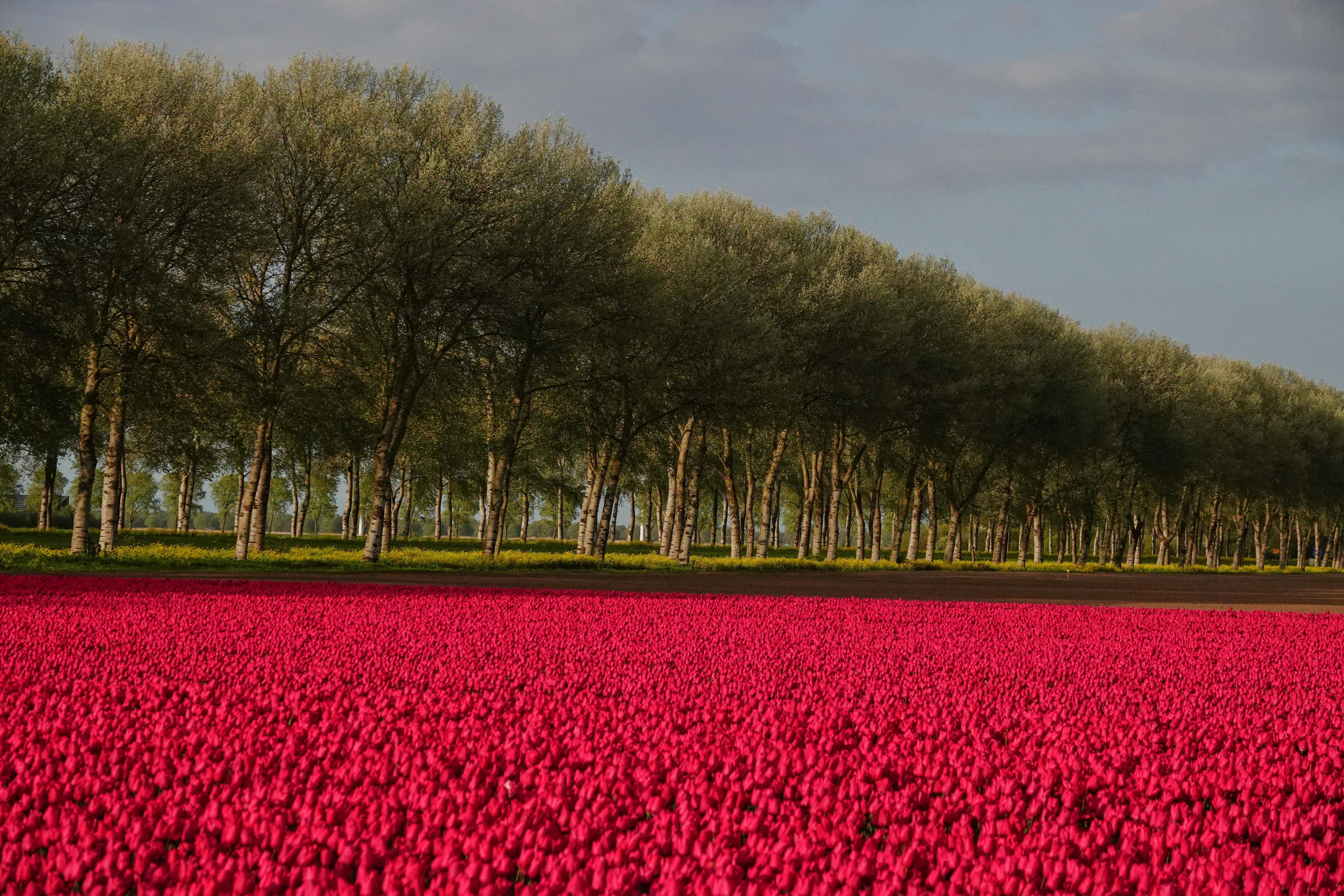 Op weg naar huis van een heerlijk dagje fotograferen, doemden er in de Flevopolder hier en daar een bollenveld op. Ik verwachtte die vrolijke kleuren helemaal niet in dit gebied. Maar er is uiteraard ruimte genoeg voor deze bloementeelt. Toen zich de gelegenheid voordeed, dat we veilig konden stopppen, maakten M en ik als afsluiting van de dag nog even een fleurige serie. Eerst mèt windmolens in het decor