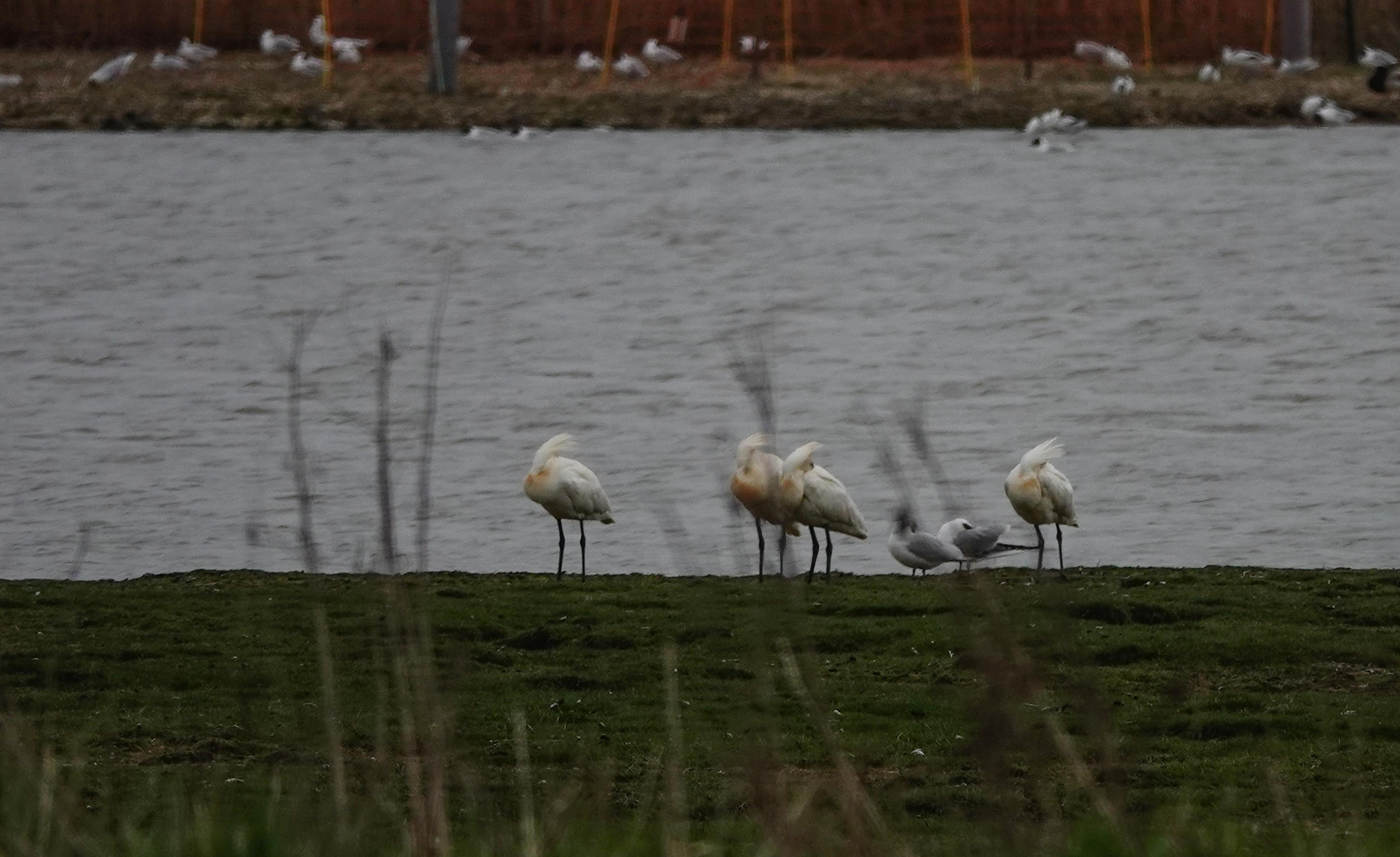 Aan de waterplas in de Breebaart polder stonden regelmatig een groepje lepelaars