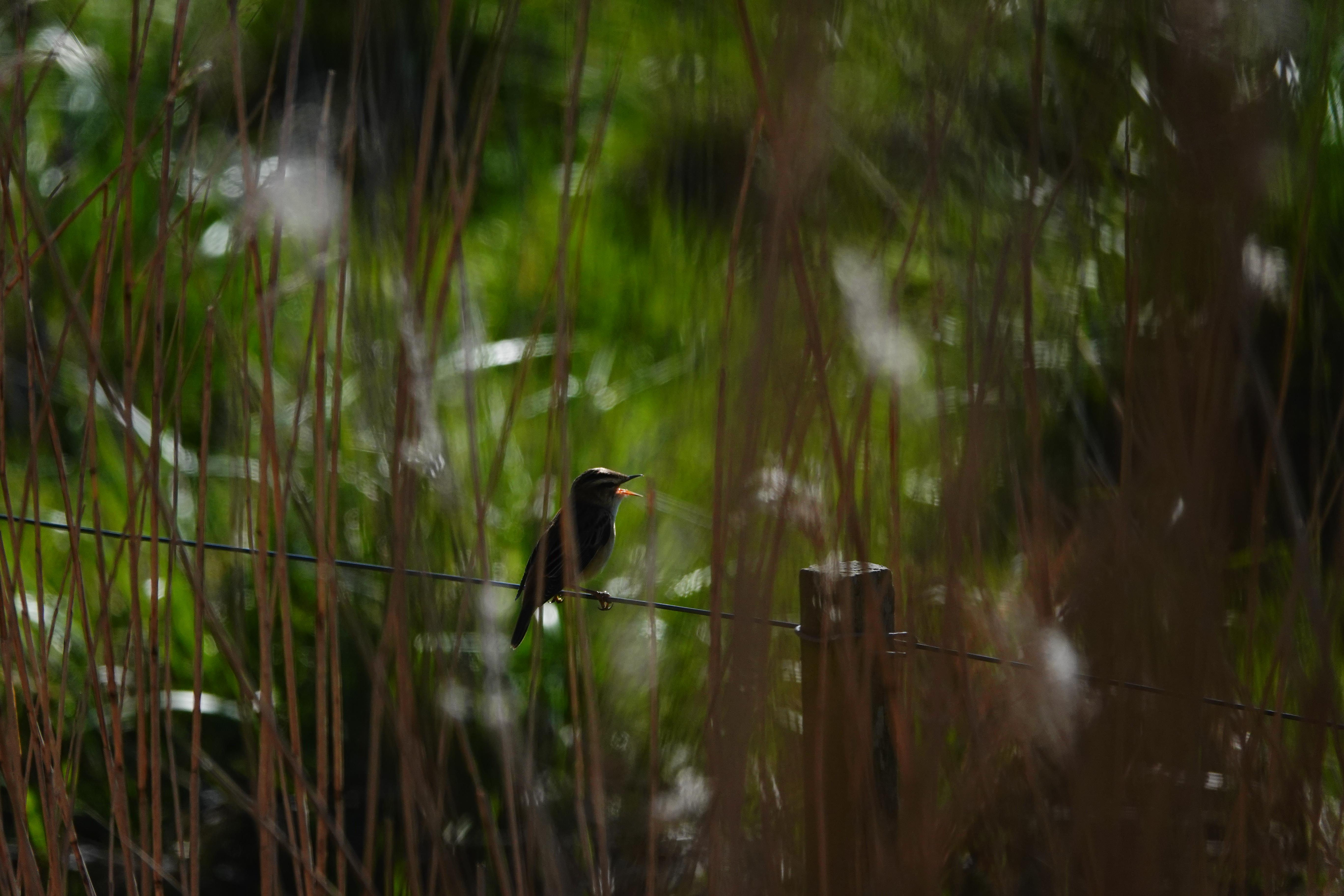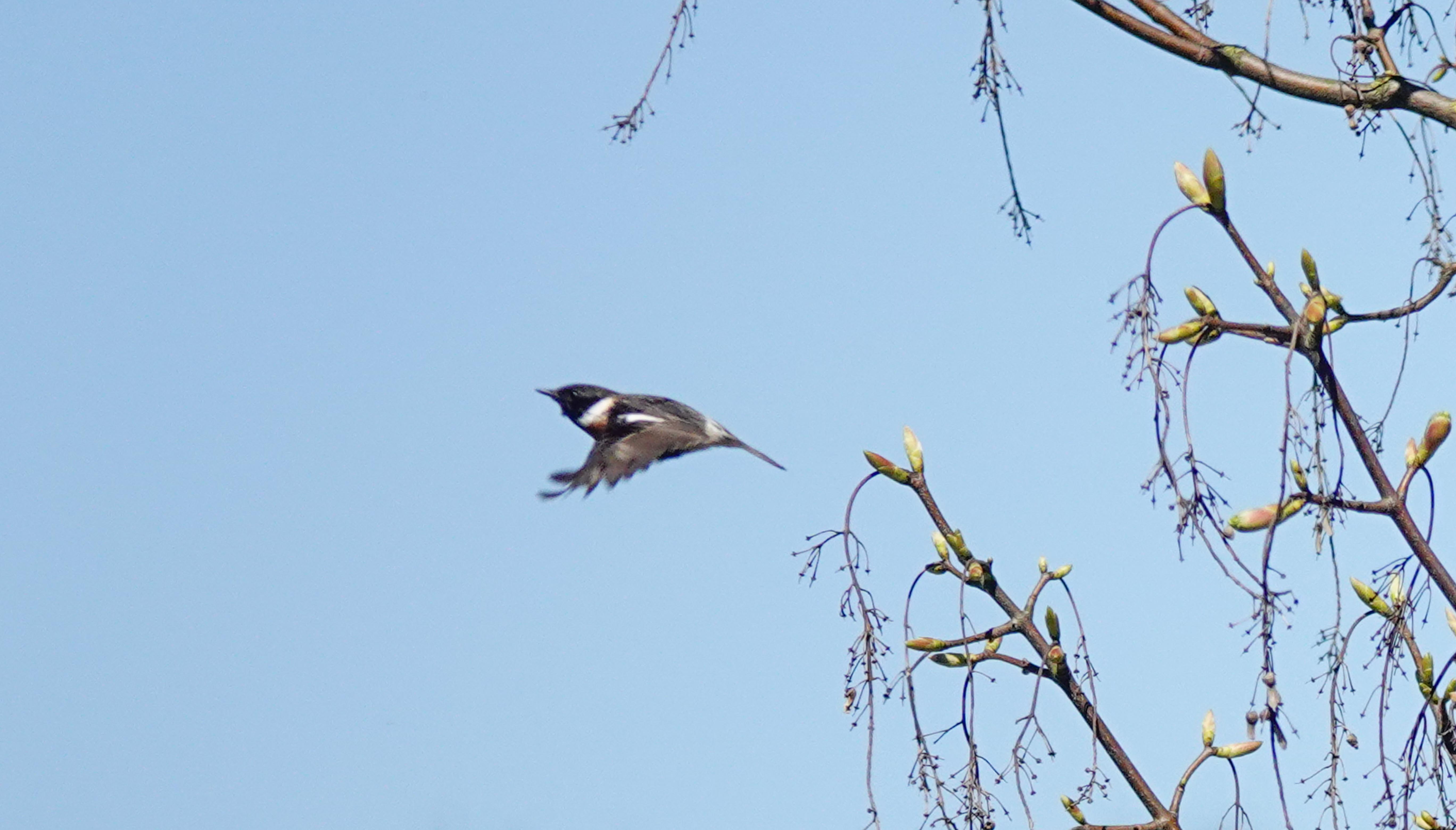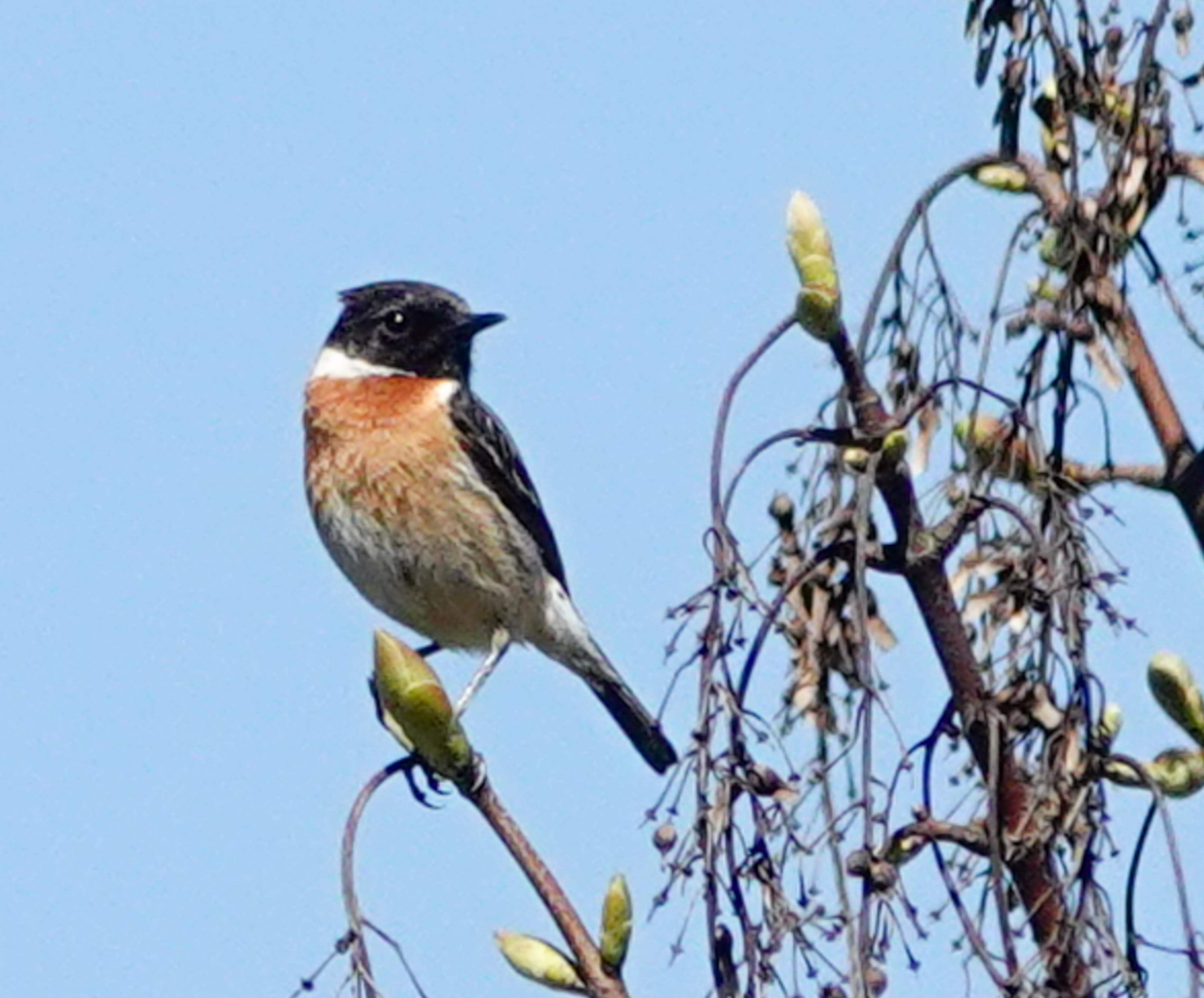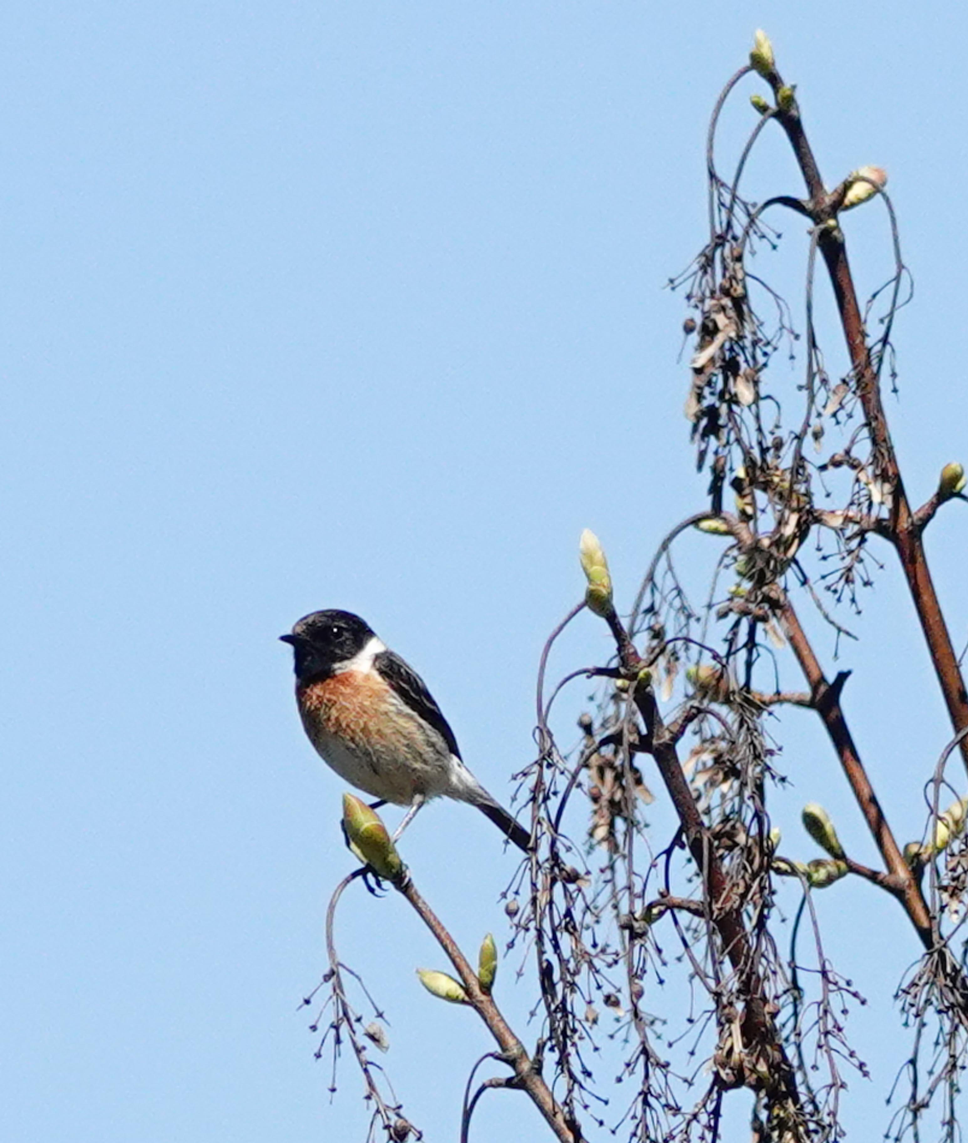 Naast ons huisje was een terrein met een batterij uit WOII. in de hoge bomen op dat terrein huisde de roodborsttapuit. Grappig, dat hij regelmatig op dezelfde plek zat.