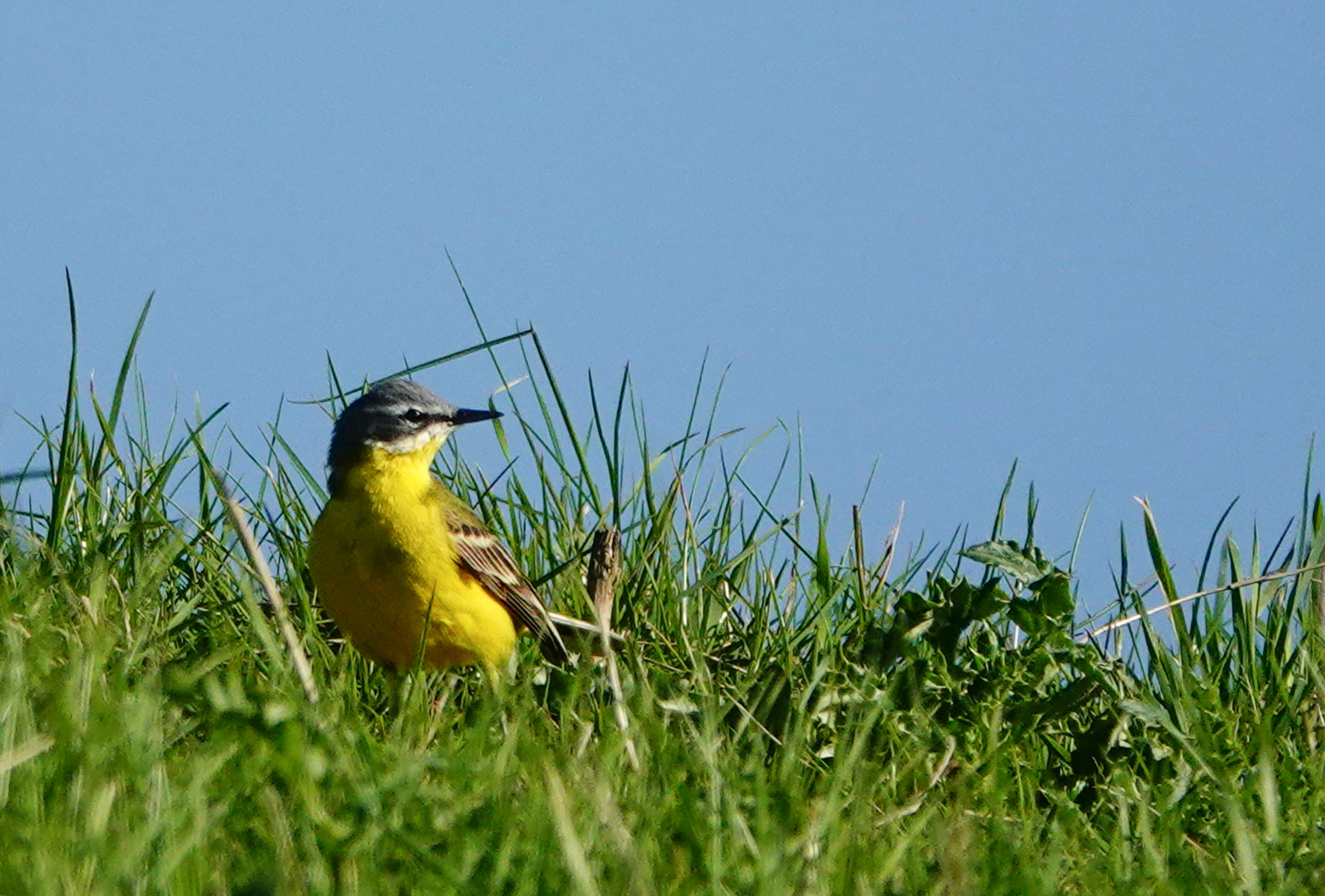 Langs de dijk, eigenlijk erop, zag ik op een avond de gele kwikstaart in de zon zitten.