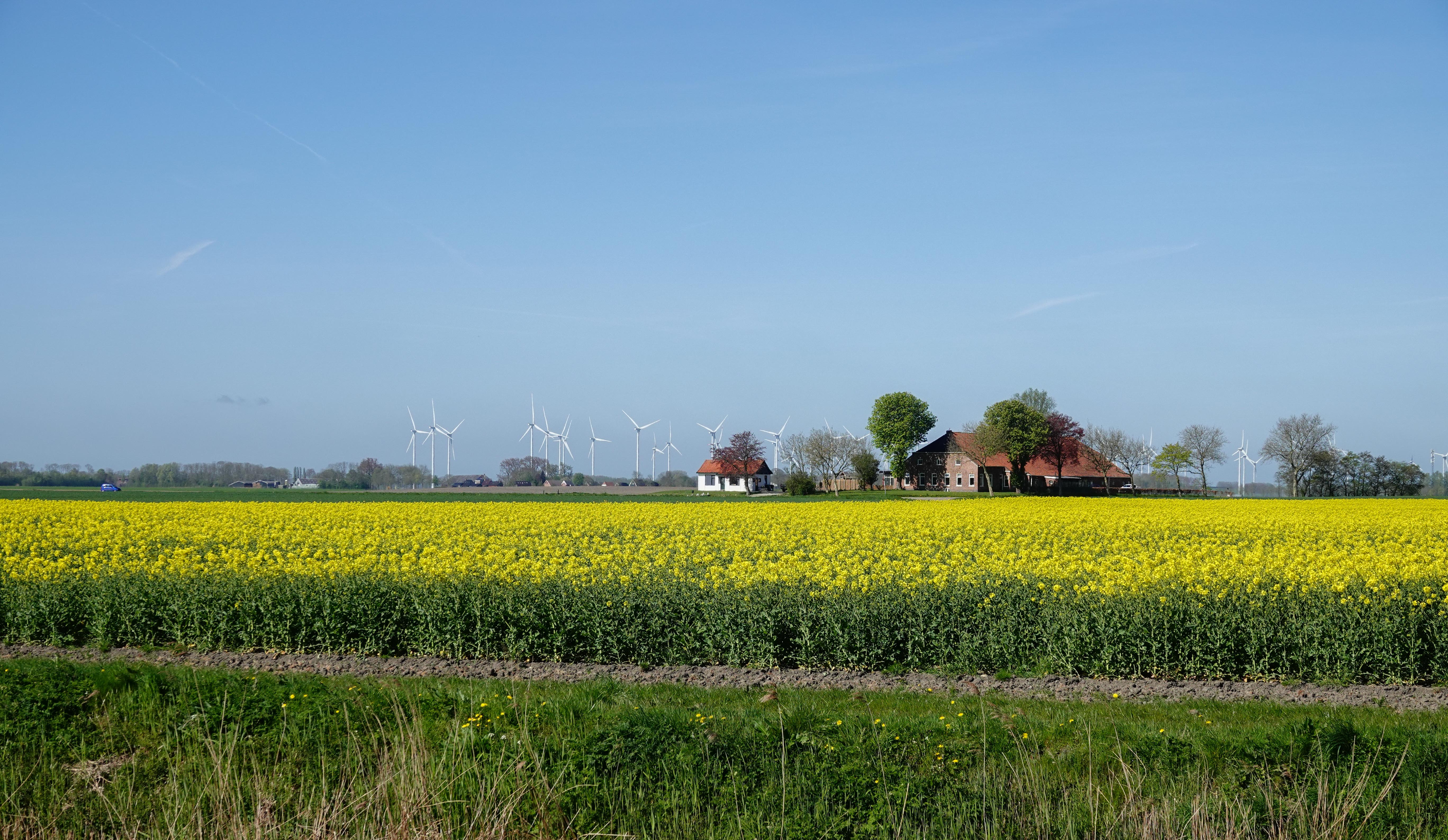 Noord oost Groningen is een plattelandsregio. In het uiterste noorden, waar landwinning het landschap bepaald, staat het gebied bekend als graanrepubliek. Je ziet veel lappen zwarte aarde, de akkerbouw gebieden, waar later graan- en aardappelvelden zullen verrijzen. Nu kleurde het land mooi door de koolzaad waar olie van gemaakt wordt.